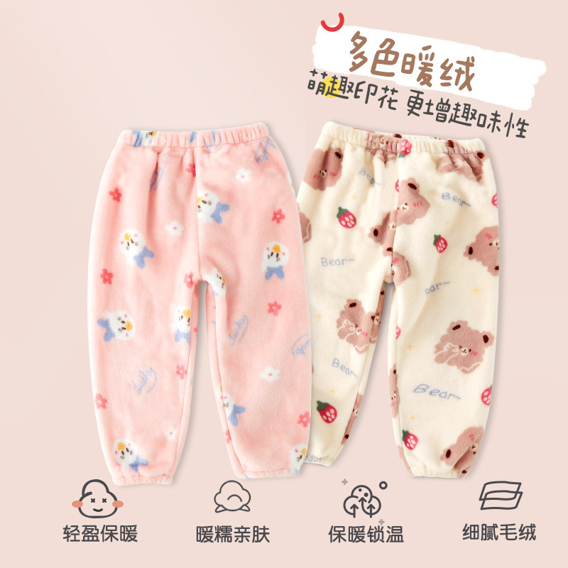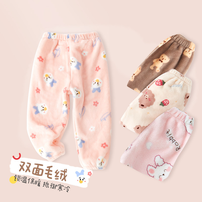 女童睡裤珊瑚绒儿童秋冬季裤子暖暖裤宝宝法兰绒家居裤加绒加厚款