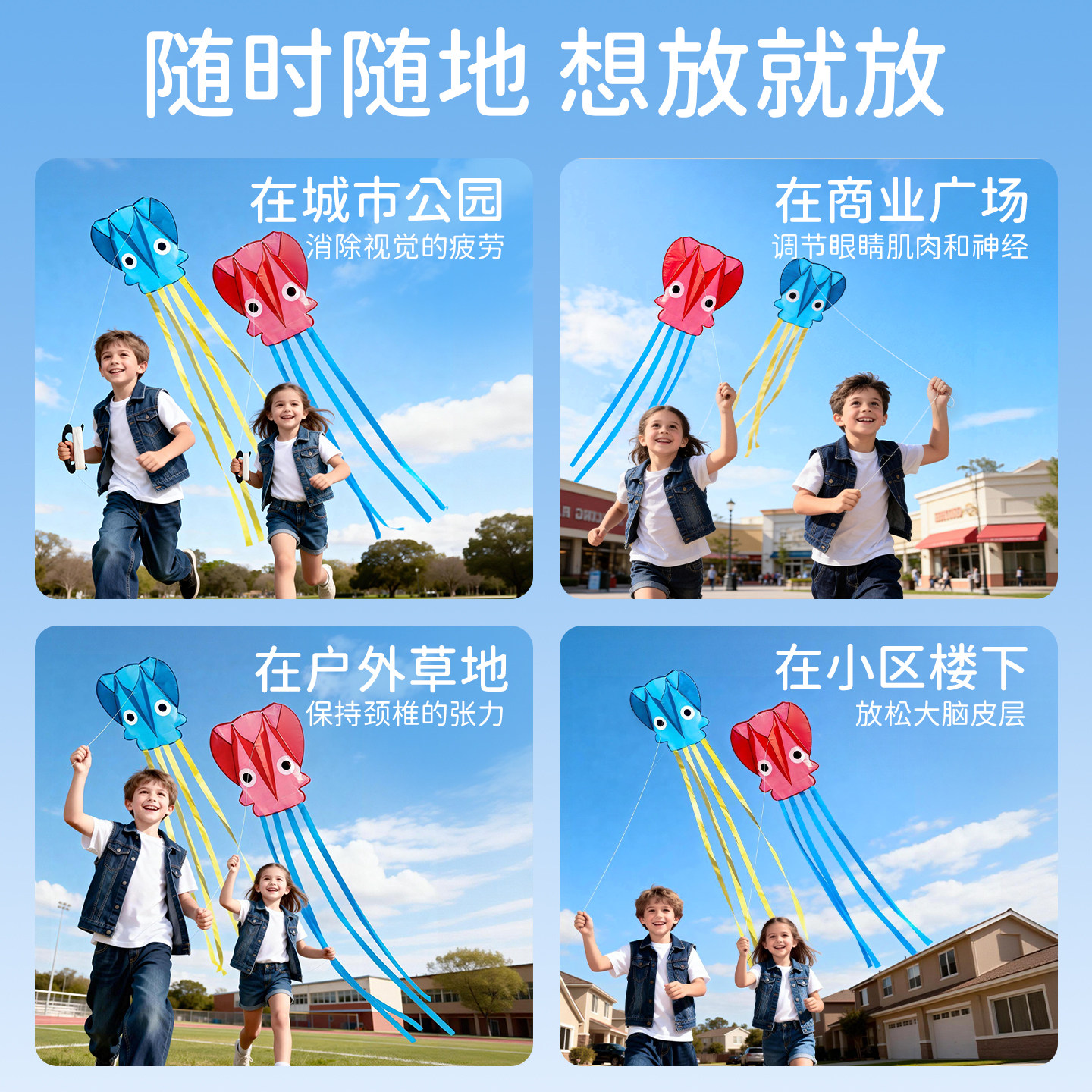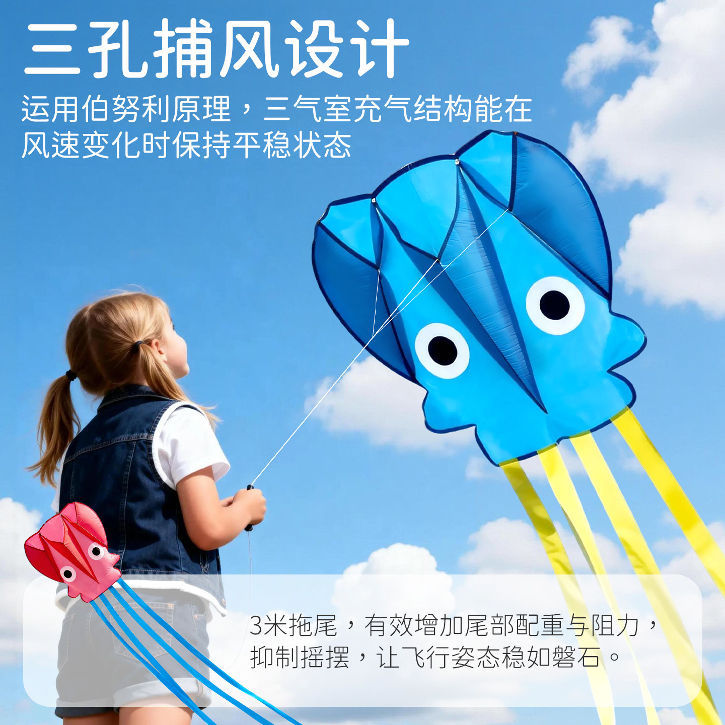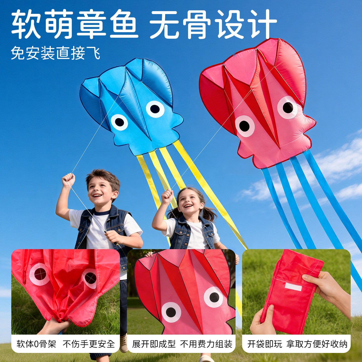 儿童风筝口袋软体小章鱼手持微风易飞便携户外2026新款可折叠无骨