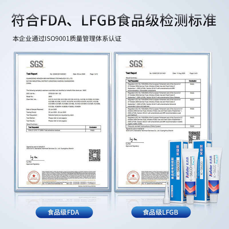 卡夫特食品级胶K5600有机硅密封胶FDA认证耐温防水绝缘健康环保无毒无害无腐蚀安全家用水壶电饭煲微波炉透明