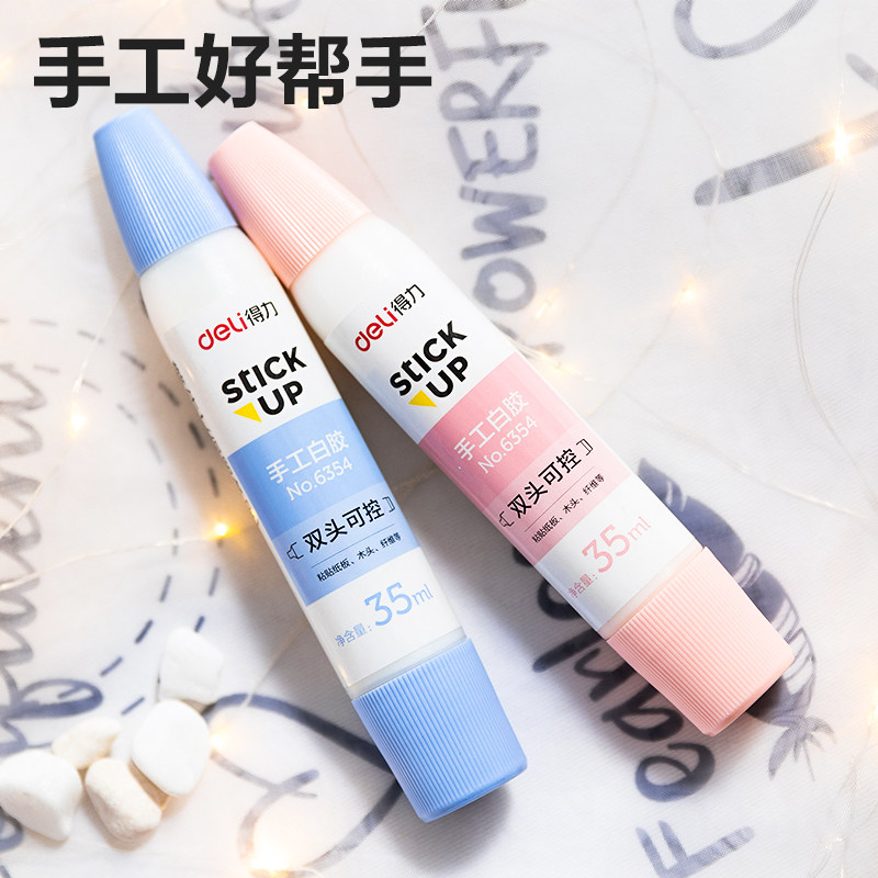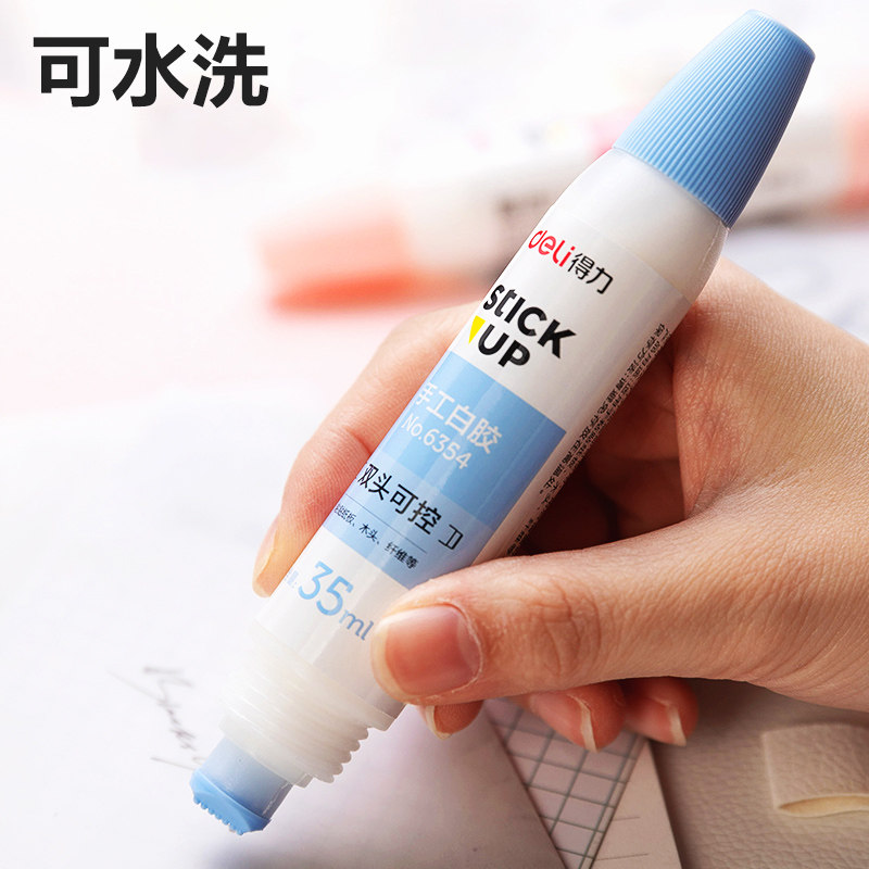 得力双头白胶手工胶小学生美术手账专用材料液体胶高粘力水儿童6瓶装DIY可水洗白乳胶史莱姆无毒无甲醛可水洗