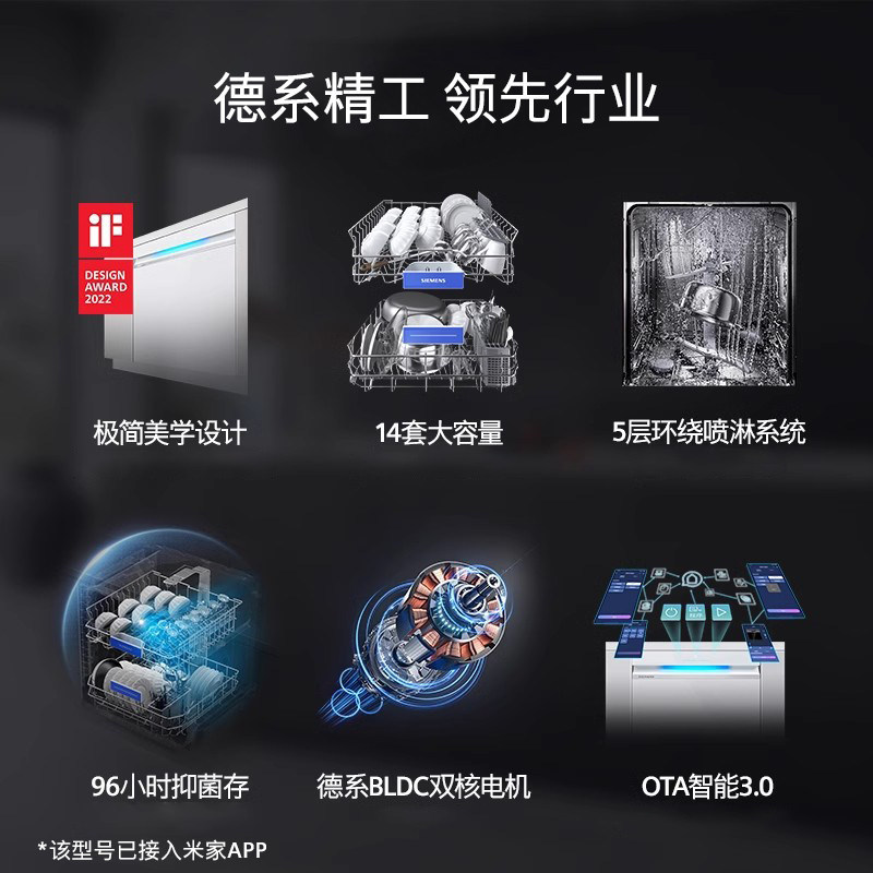 【极净魔盒】西门子14+2套嵌入式洗碗机家用全自动黑白可选XB33