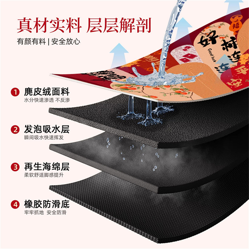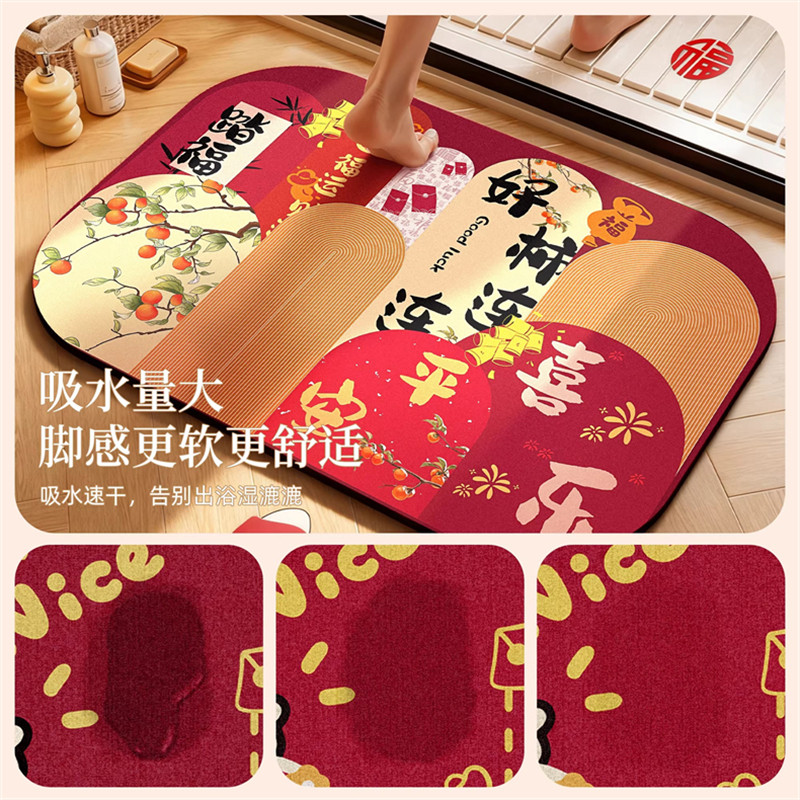 马年红色浴室地垫吸水家用卫生间门口卡通防滑垫新年硅藻泥脚垫子