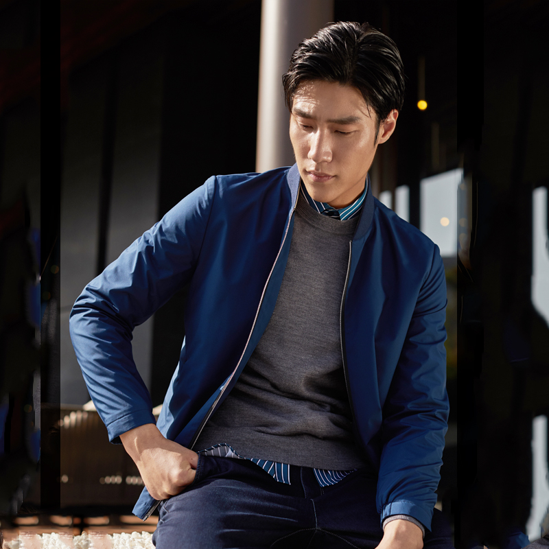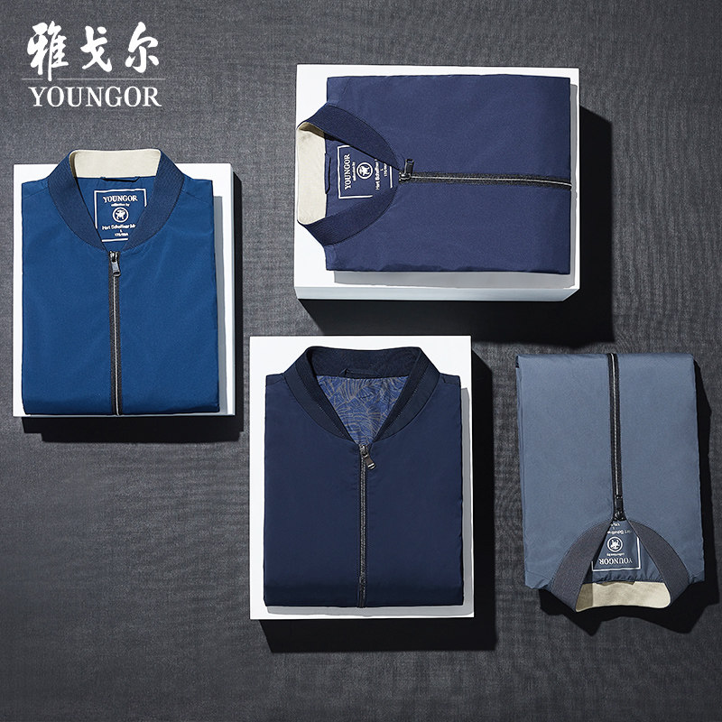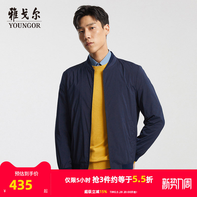雅戈尔夹克春季新款男士官方休闲棒球领潮流短款藏青飞行外套1936