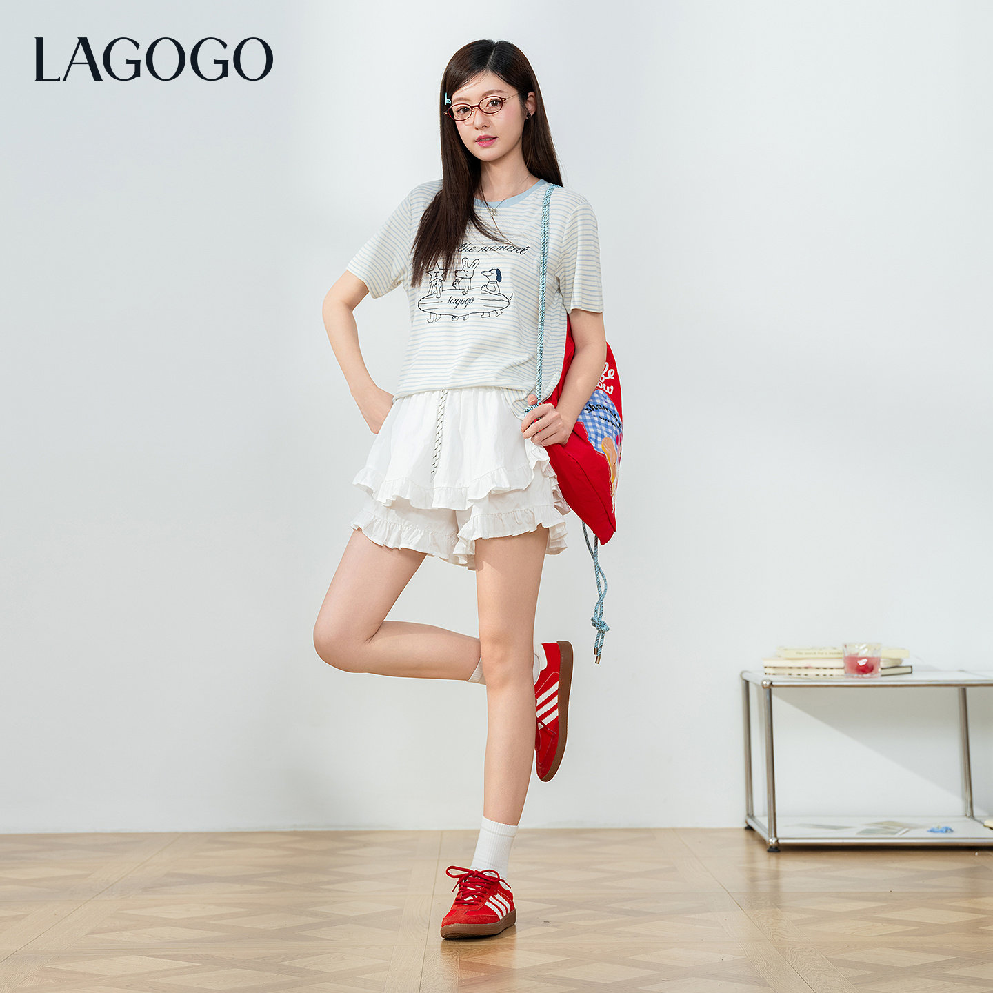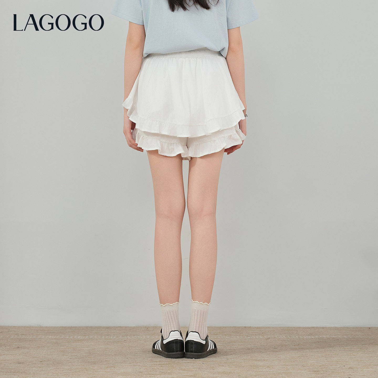 【防走光】LAGOGO双层荷叶边裙裤女拉谷谷2026夏新款甜美百搭短裤