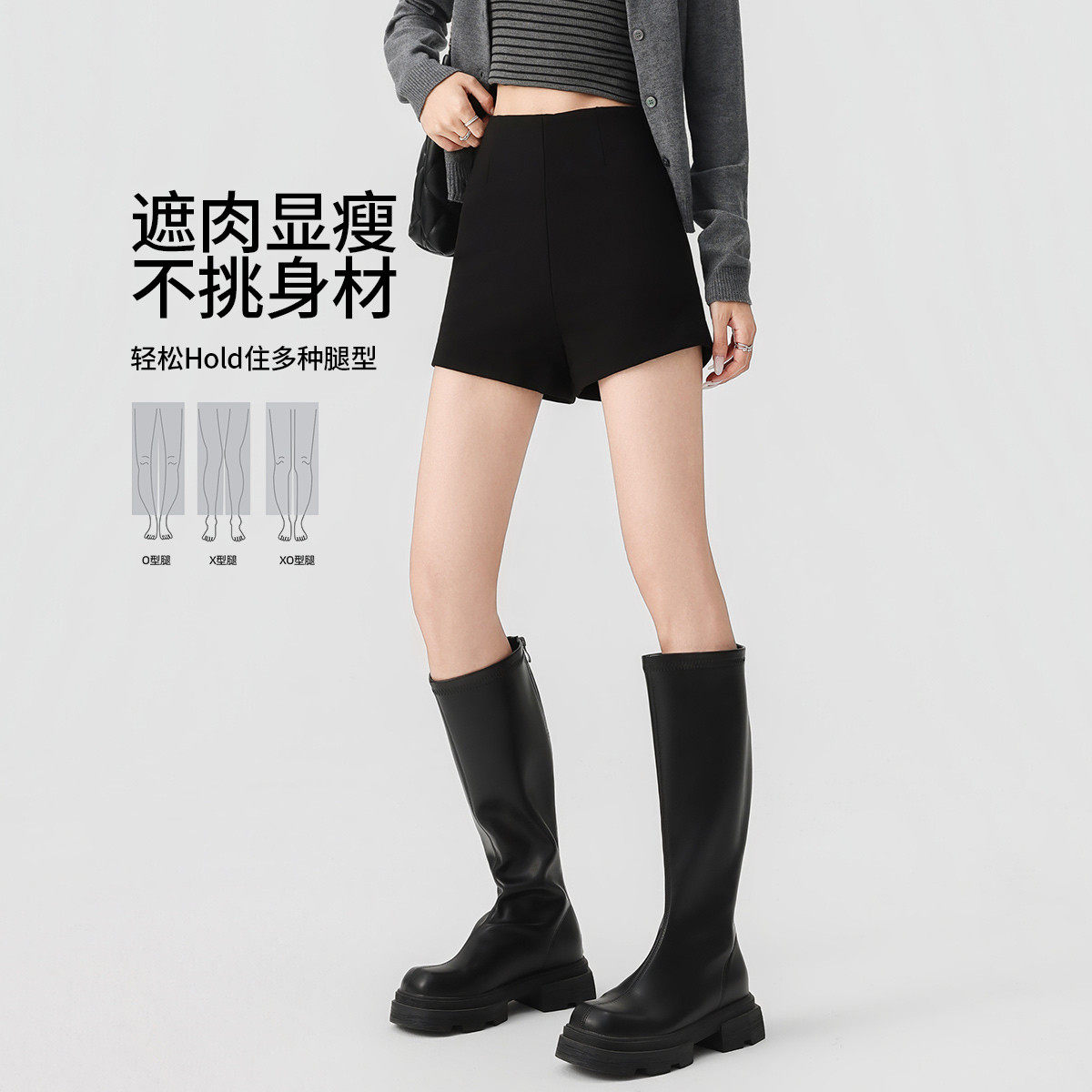 one more纯色A字收腹无痕短裤2025新款百搭简约提臀塑形高腰短裤