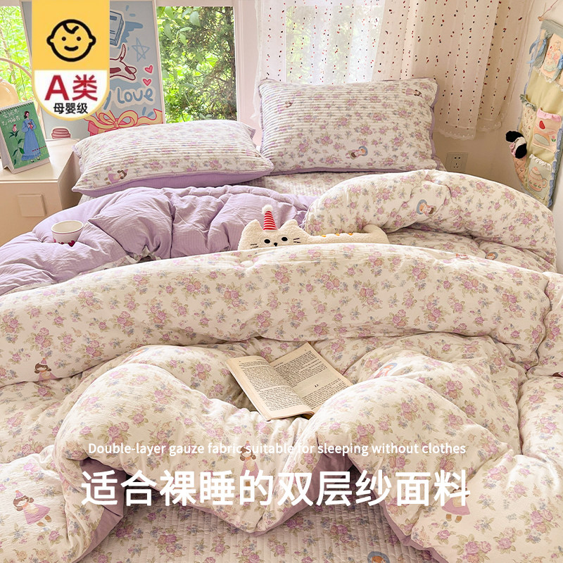 A类全棉夏凉被四件套纯棉空调被可机洗薄被子夏季单人夏被三件套4