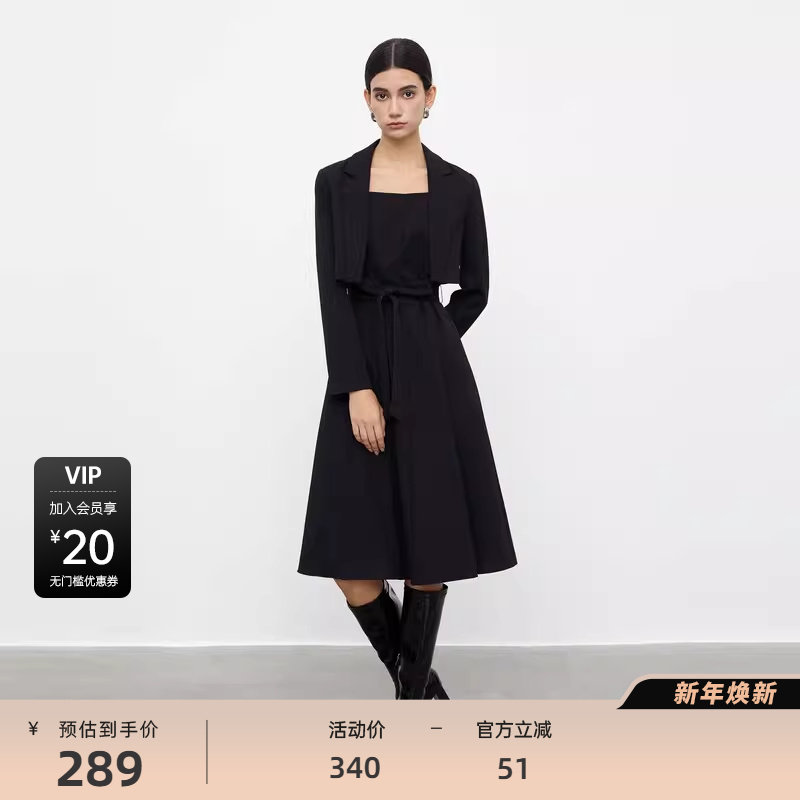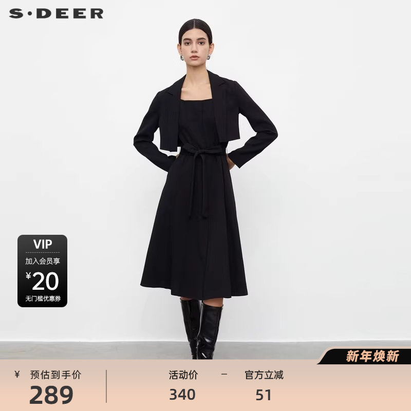 sdeer圣迪奥女装秋OL风西装领收腰外套吊带裙套装S233Z1410
