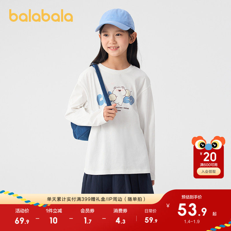 巴拉巴拉童装女童长袖t恤2025年春秋装新款儿童上衣中大童打底衫