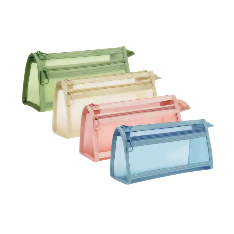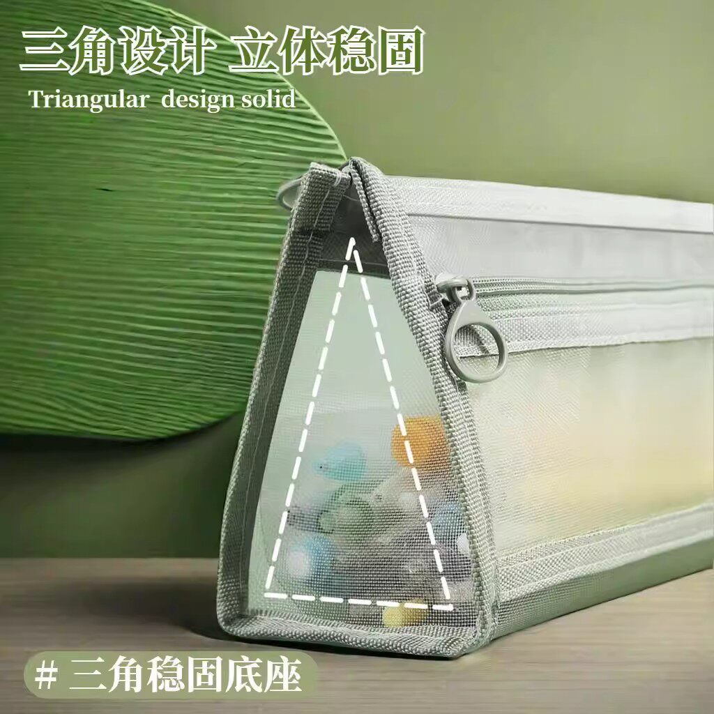 莫兰迪笔袋透明网纱高颜值ins风简约双层大容量小学生考试拉链文具收纳袋初中生就盒学习用品绿色立体蓝色
