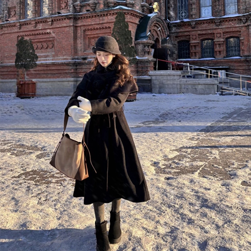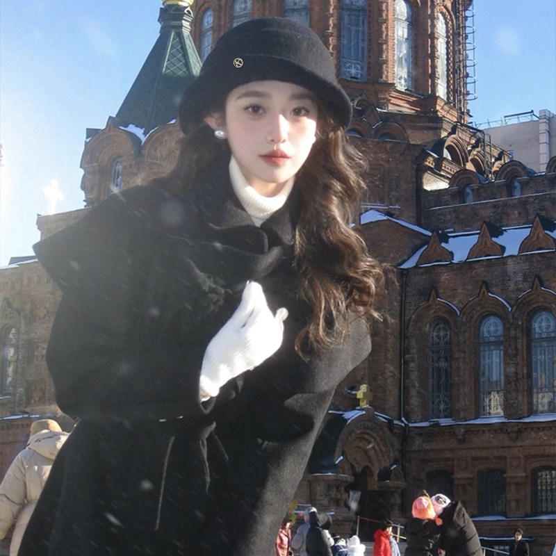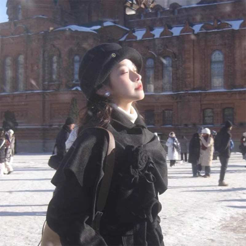 黑色赫本风羊毛千金帽子女士秋冬季英伦礼帽高级感保暖百搭马术帽
