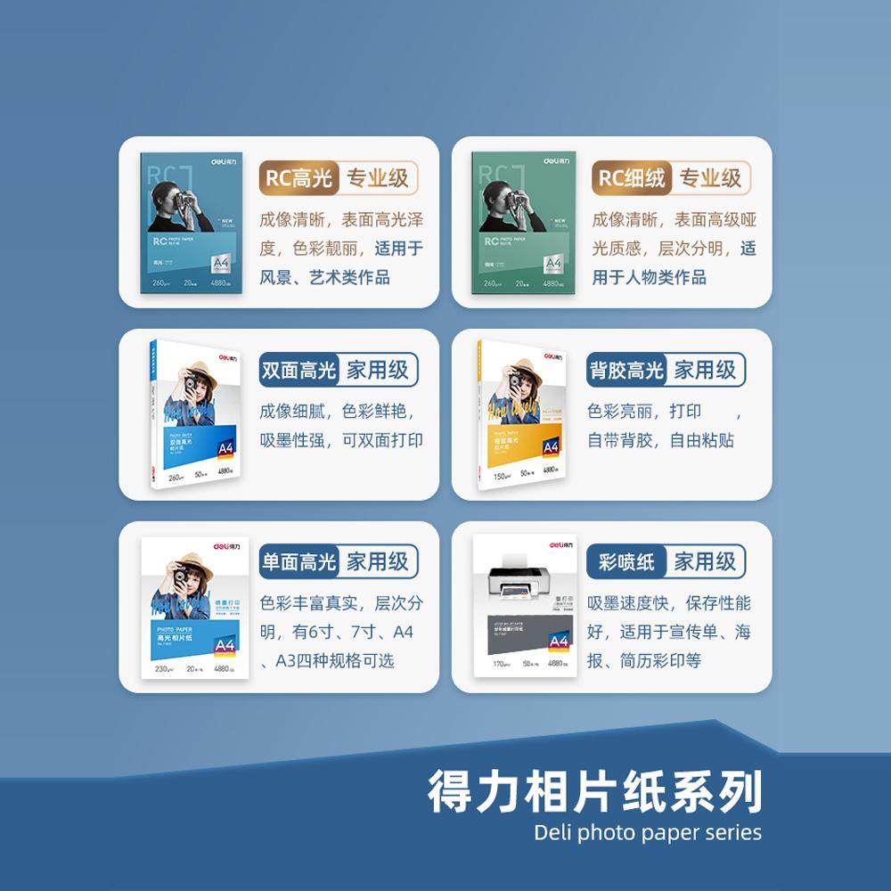 得力a4相片纸照片纸高光纸彩色喷墨打印机专用相纸200克6寸照相纸