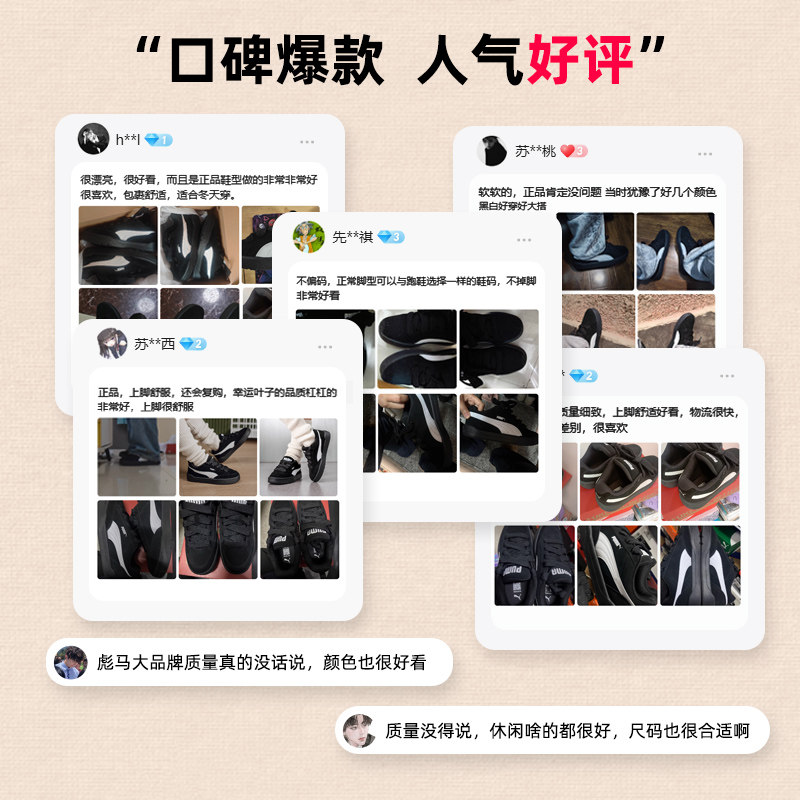 PUMA彪马板鞋男鞋女鞋2026春季新款黑色面包鞋休闲鞋运动鞋401606