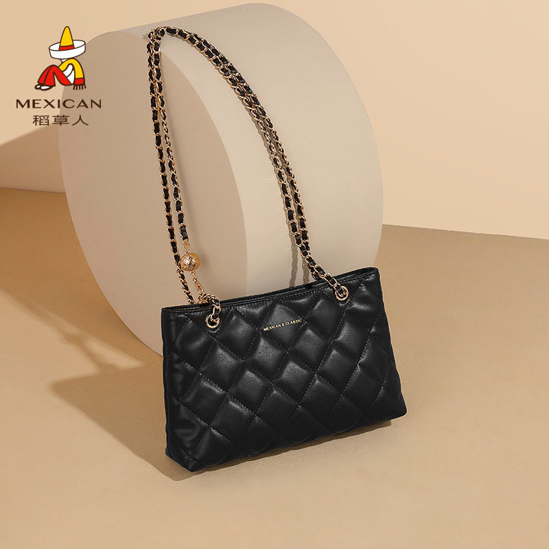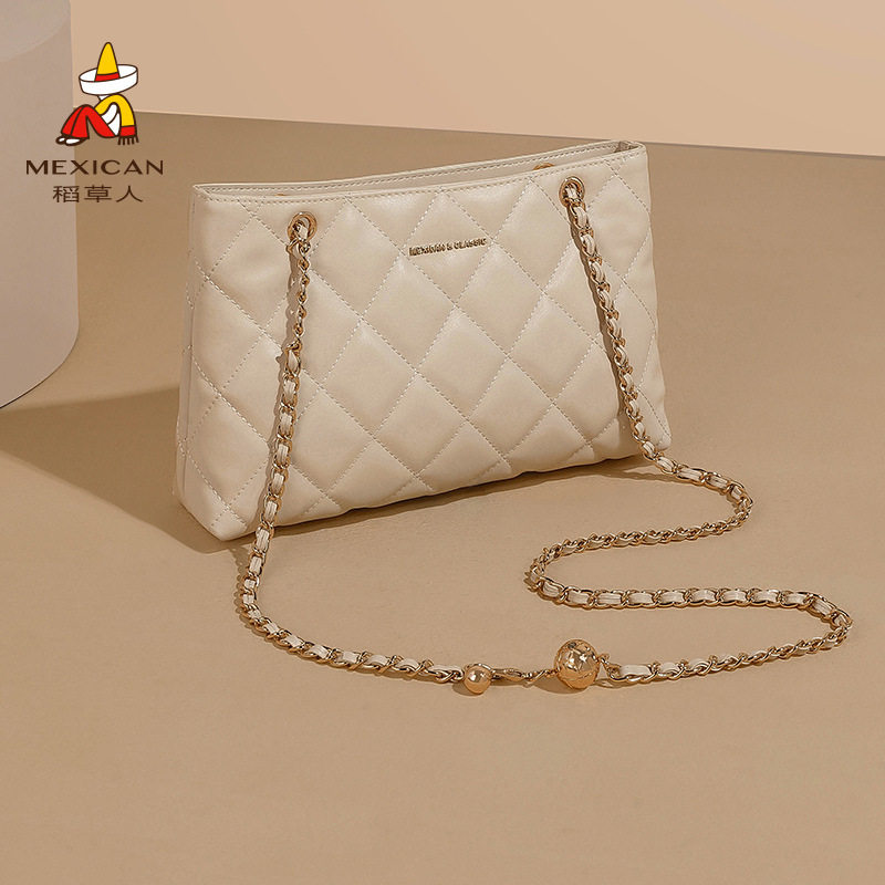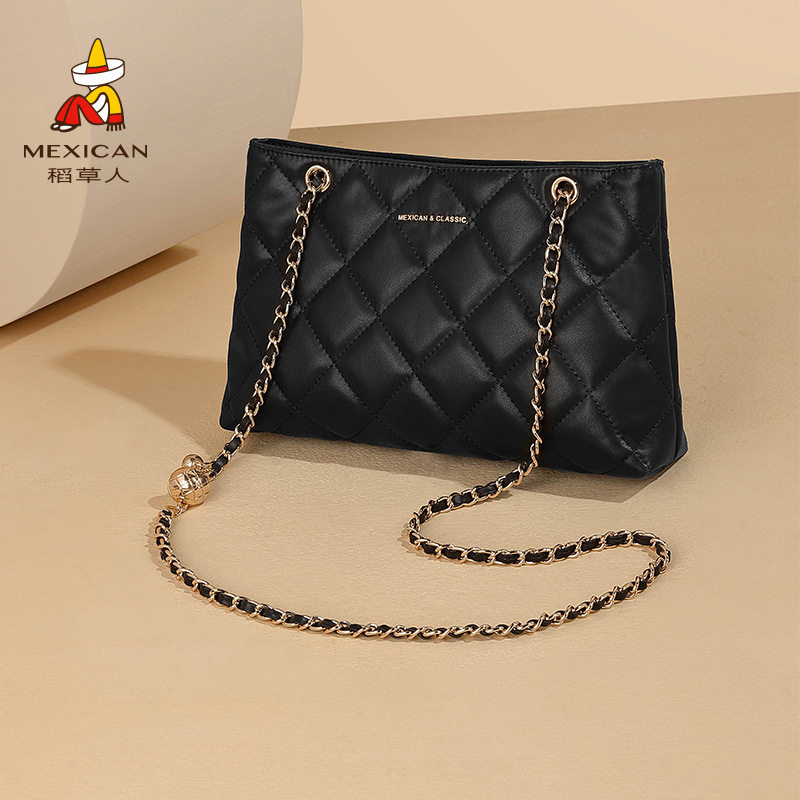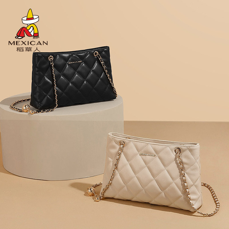 稻草人包包新款女式大容量菱格链条百搭牛皮小众高级感真皮斜挎包