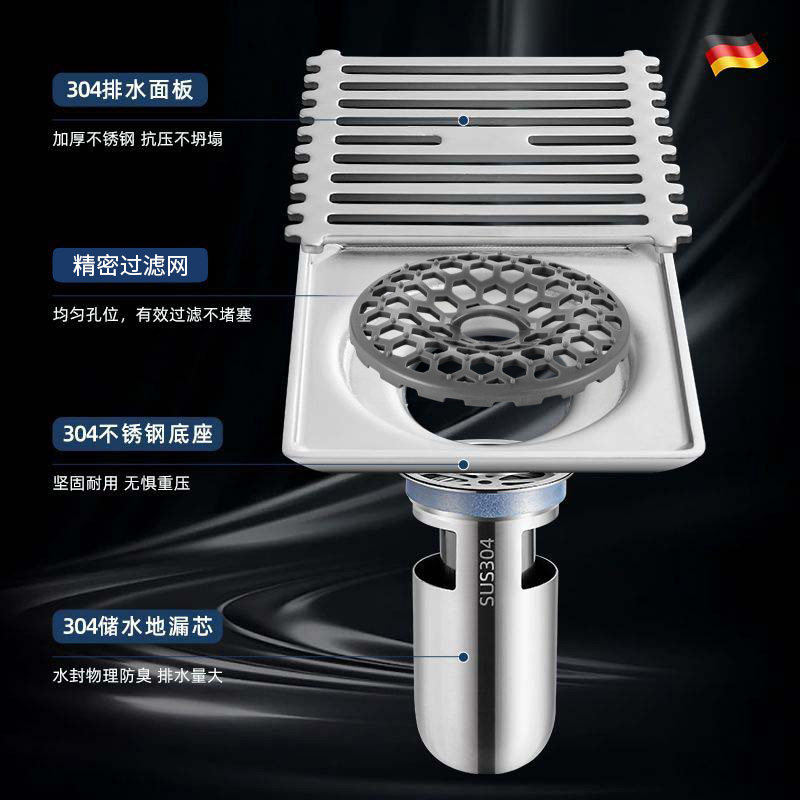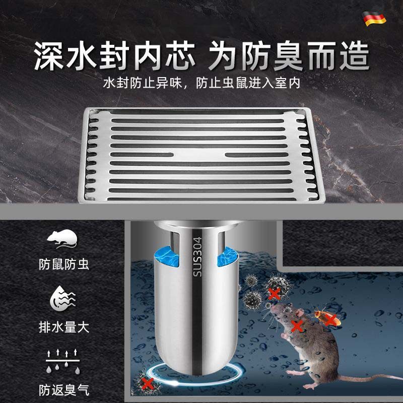 深水封防臭地漏304不锈钢浴室卫生间洗衣机大排量下水道排水密封