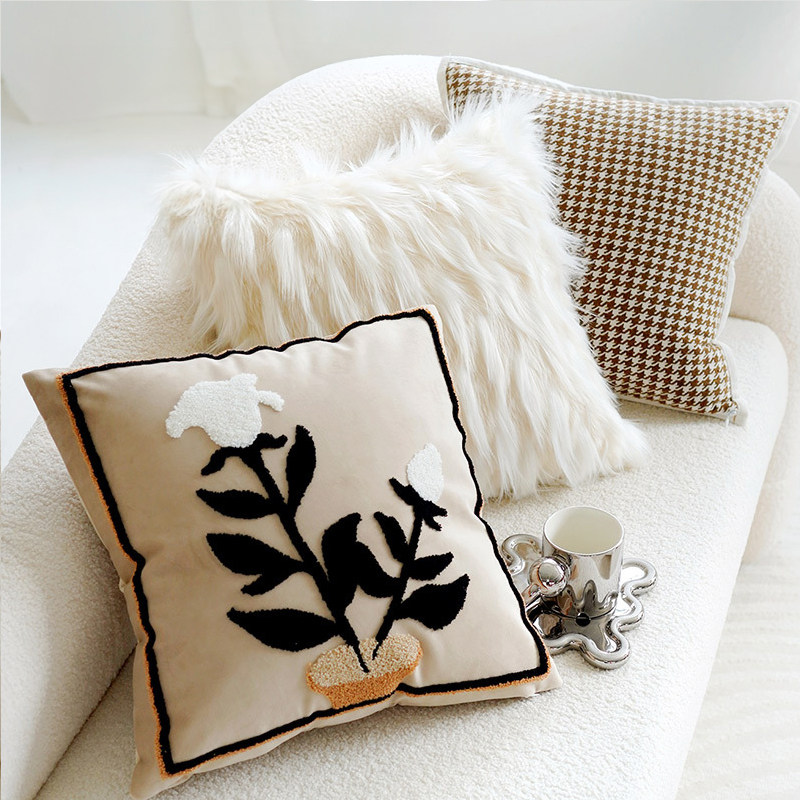 卧室棕色植物燕麦奶油色轻奢客厅沙发抱枕套复古靠枕高级床头靠垫