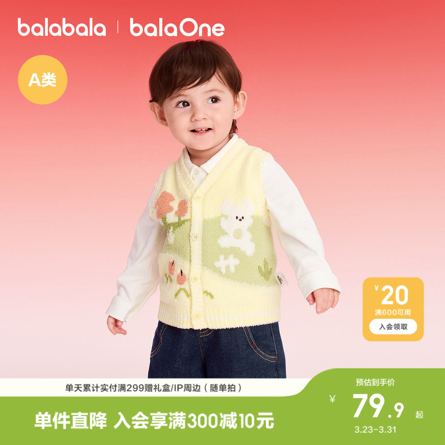 巴拉巴拉童装儿童马甲男童宝宝女童上衣2026新款春装针织百搭时尚