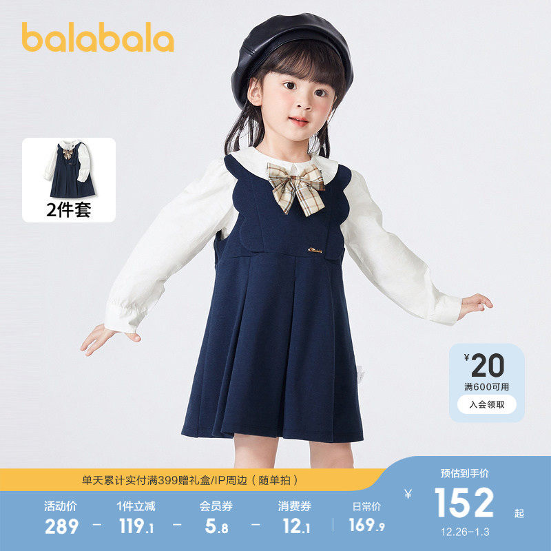 巴拉巴拉童装女童套装春秋儿童洋气学院风两件套背带裙子休闲小童