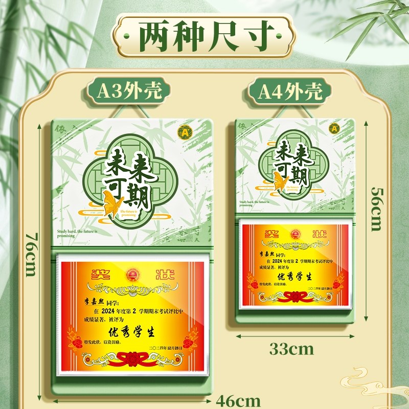 2026新款中国风奖状收集册收纳册可挂墙展示小学生男孩女孩上墙神器儿童大尺寸a3初中生大号荣誉装奖状的册子