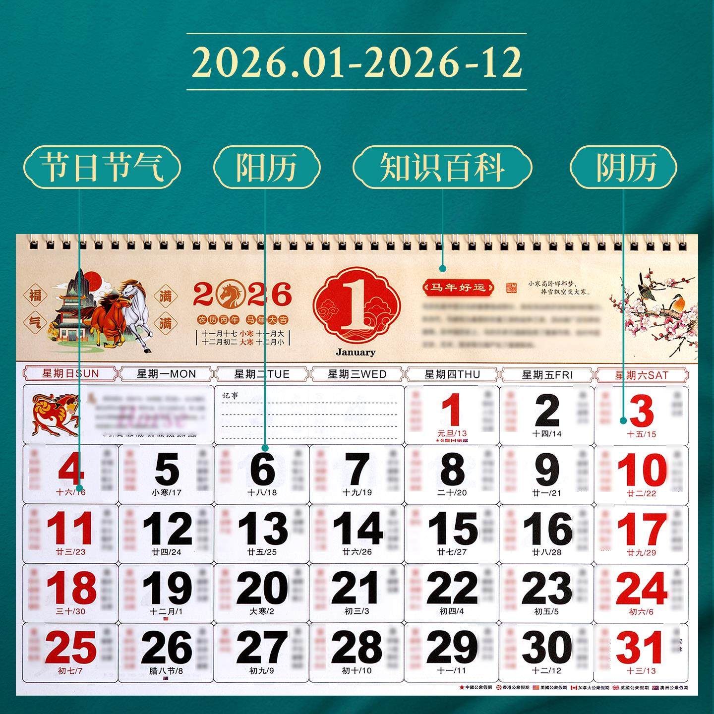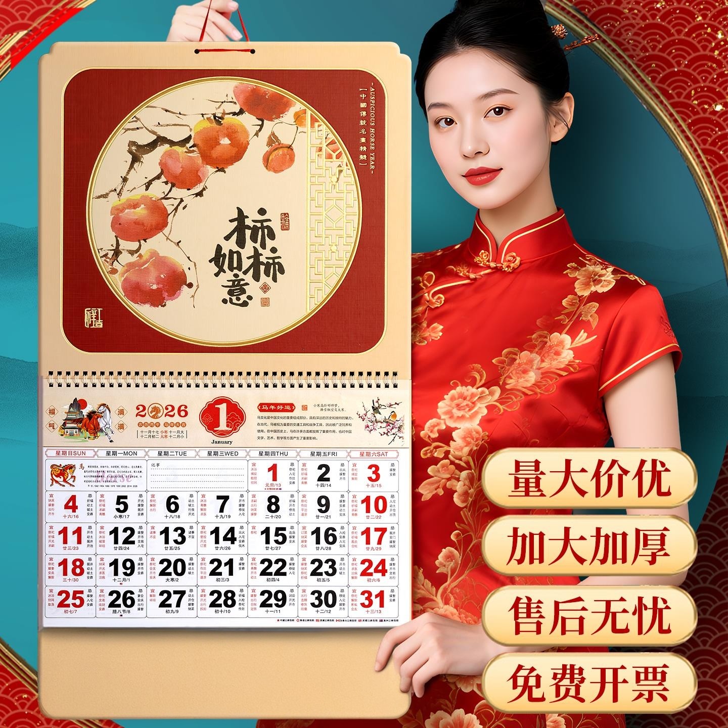 挂历2026马年柿柿如意高档公司新年礼品撕历吊牌家用装饰挂墙创新工艺加厚挂式年历月历日历