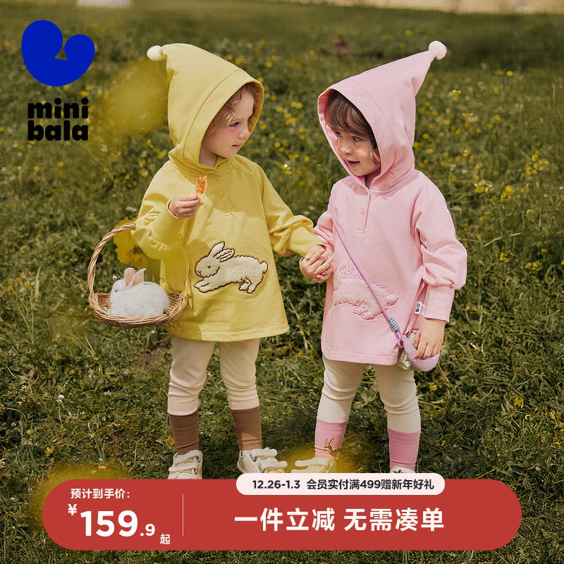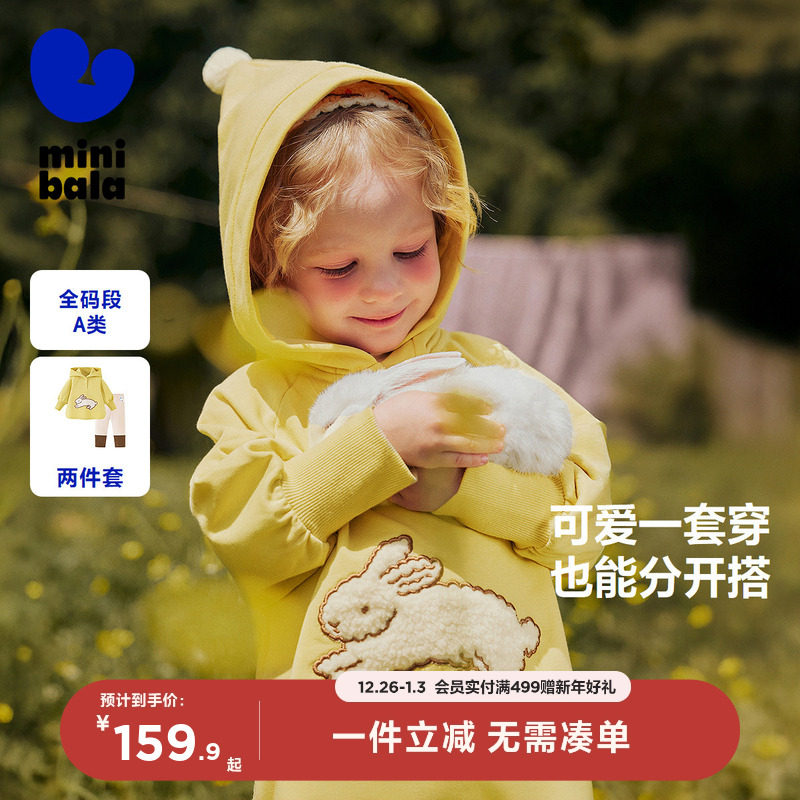 迷你巴拉巴拉女童宝宝套装儿童可爱精灵帽卫衣打底裤两件套秋新款