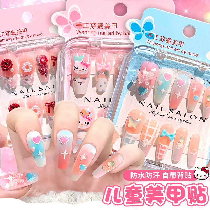卡通儿童穿戴甲女童指甲贴6岁到8岁小学生美甲贴2025新款中长款显白12岁学生党专用指甲贴片可拆卸式自粘成品