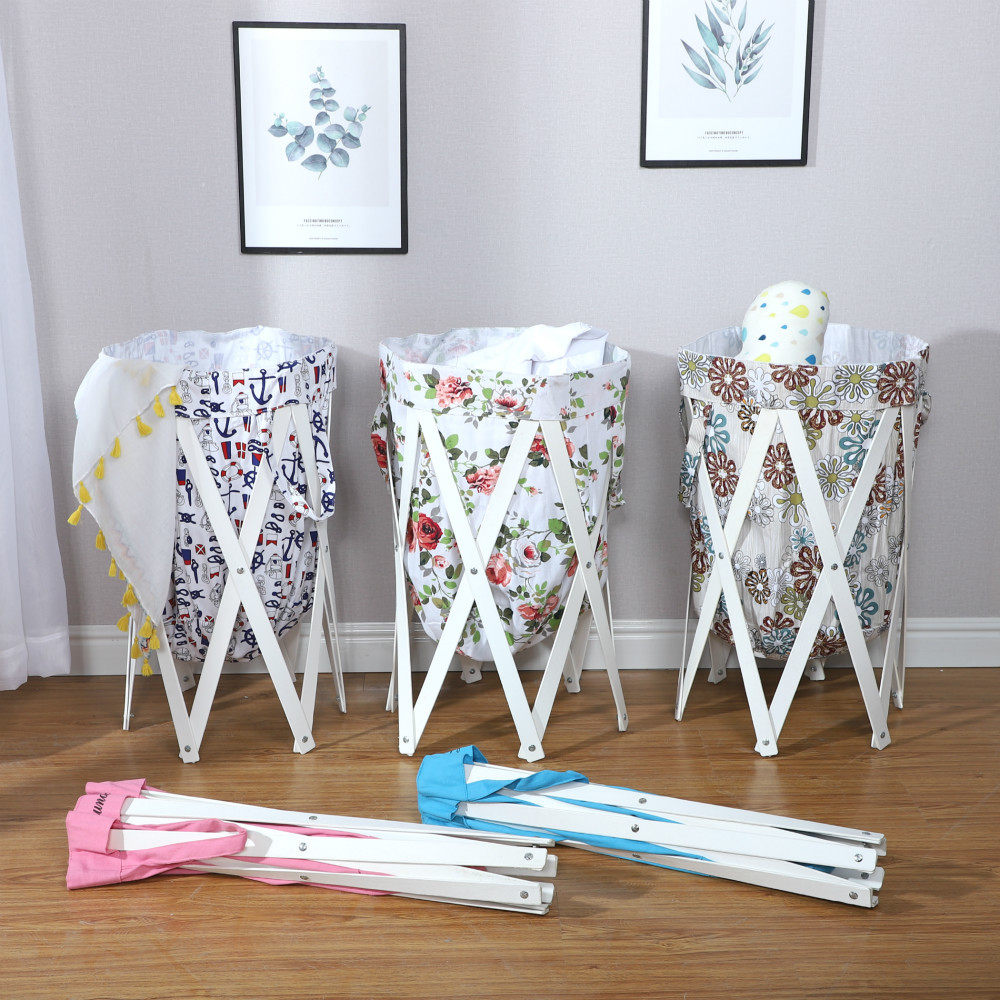 批发代发创意礼品美式布艺篓折叠篓脏衣篮洗衣篮收纳篮木质脏衣篓