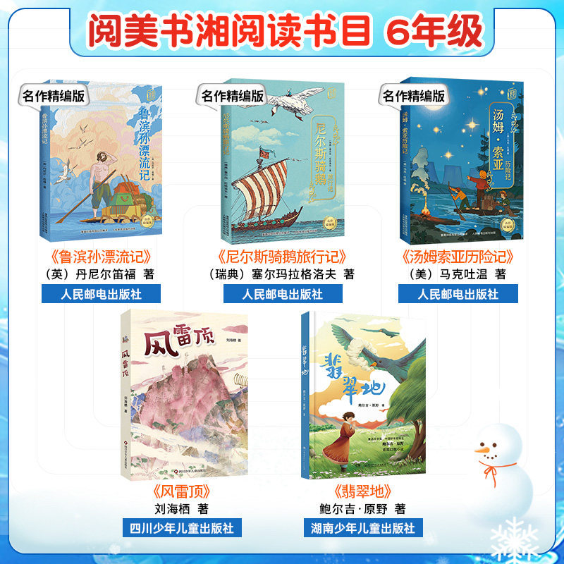 湖南阅美书湘六年级鲁滨孙漂流记名作精编版尼尔斯骑鹅旅行记名作精编版汤姆索亚历险记名作精编版风雷顶翡翠地