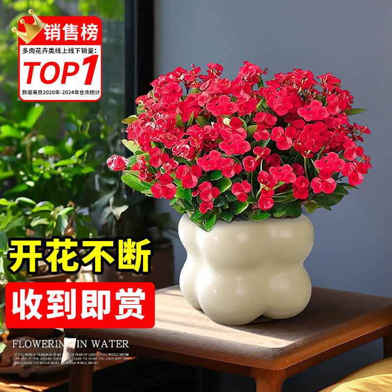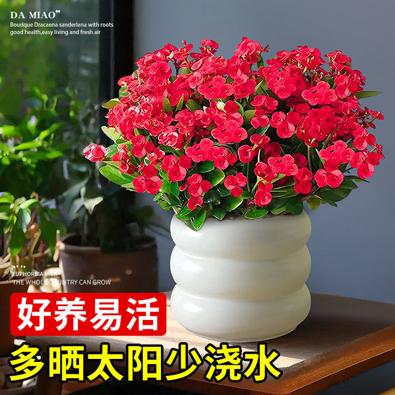 铁海棠虎刺梅盆栽老桩大叶大花阳台室内花卉桌面绿植物四季好养活