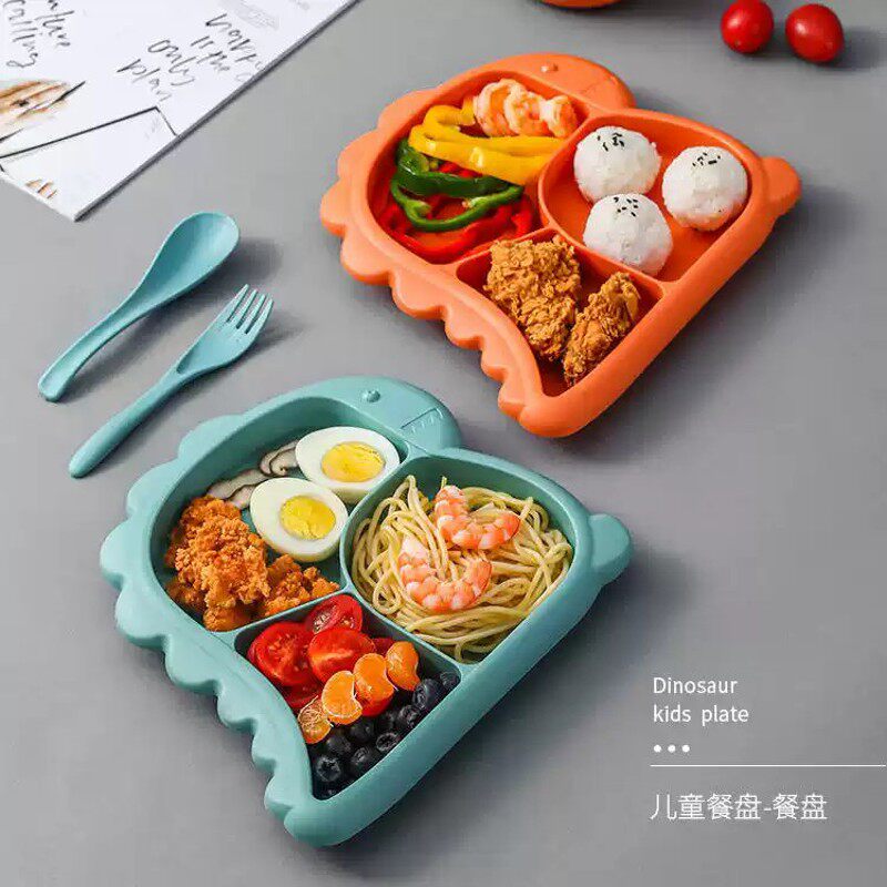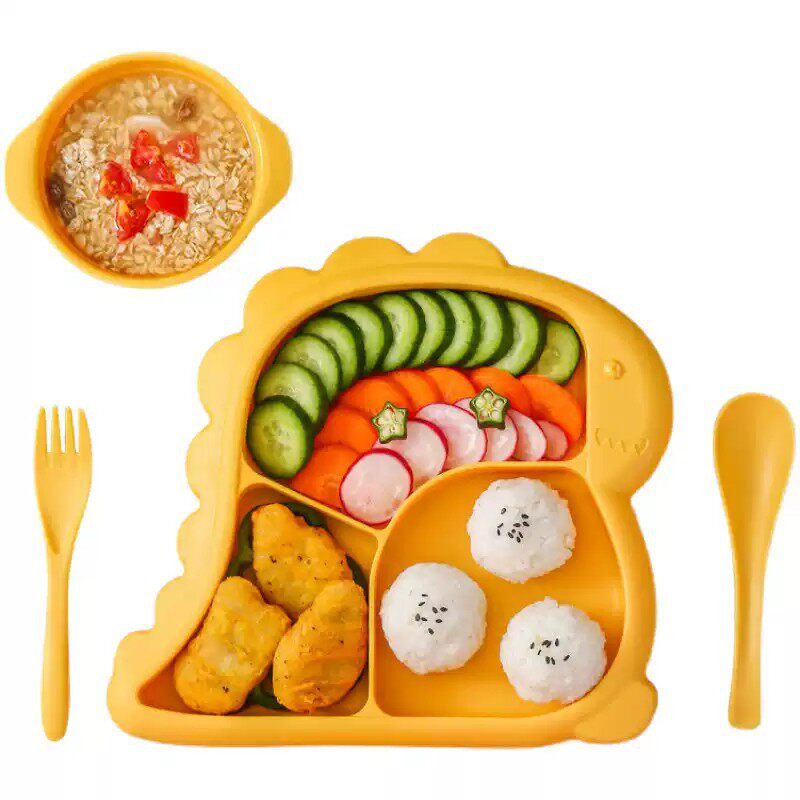 (奶瓶材料)儿童餐具套装宝宝防摔烫分格餐盘幼儿园叉勺汤碗辅食吃