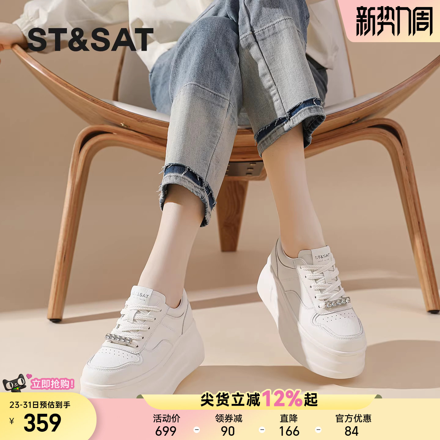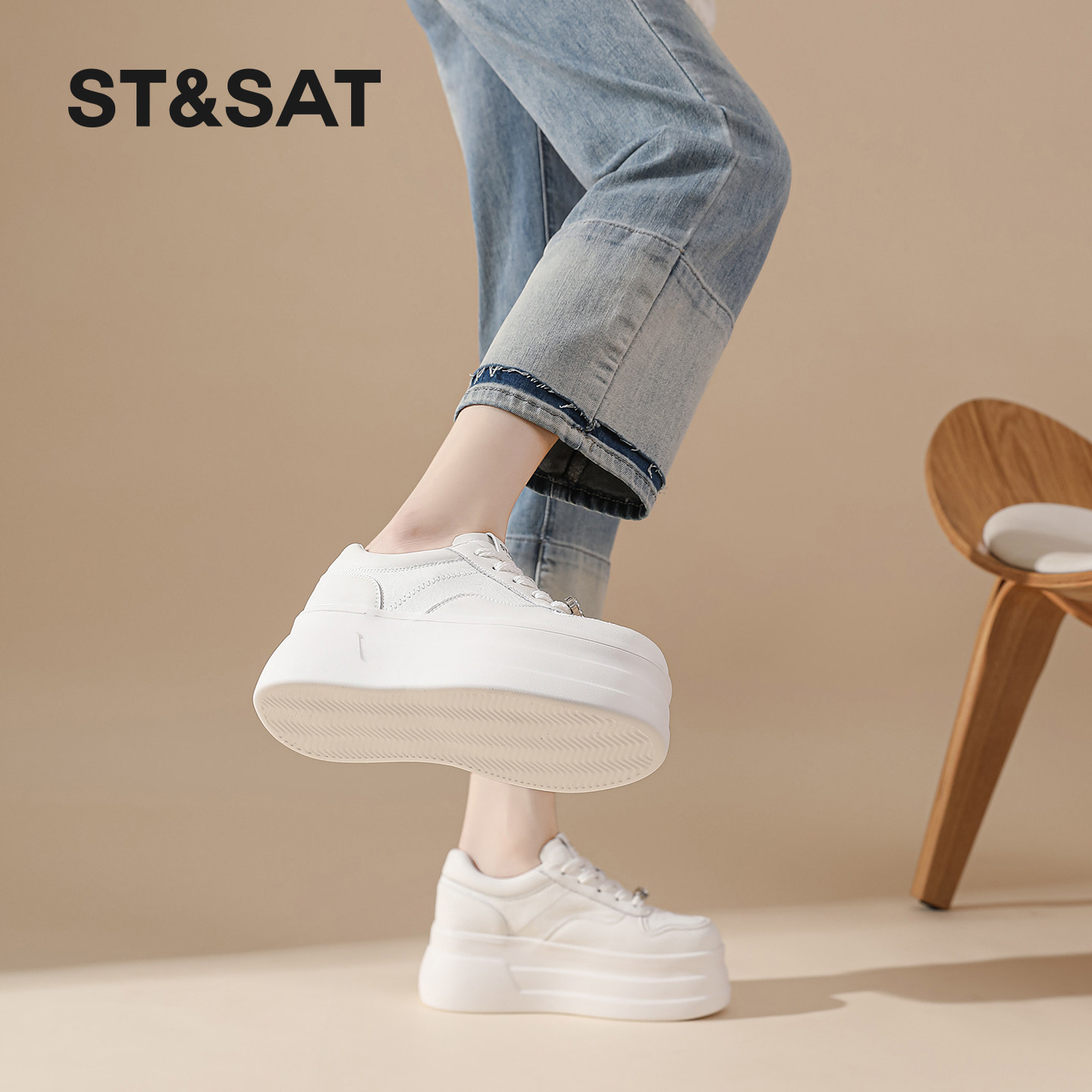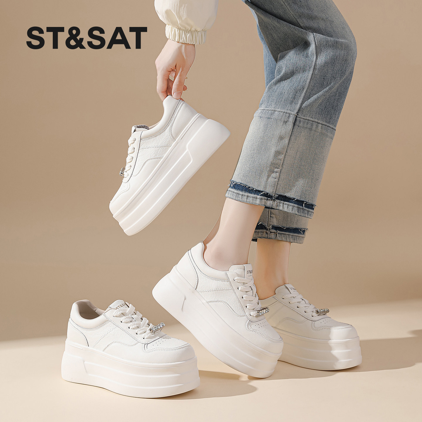 星期六厚底小个子增高小白鞋女士春季新款时尚百搭休闲运动鞋松糕