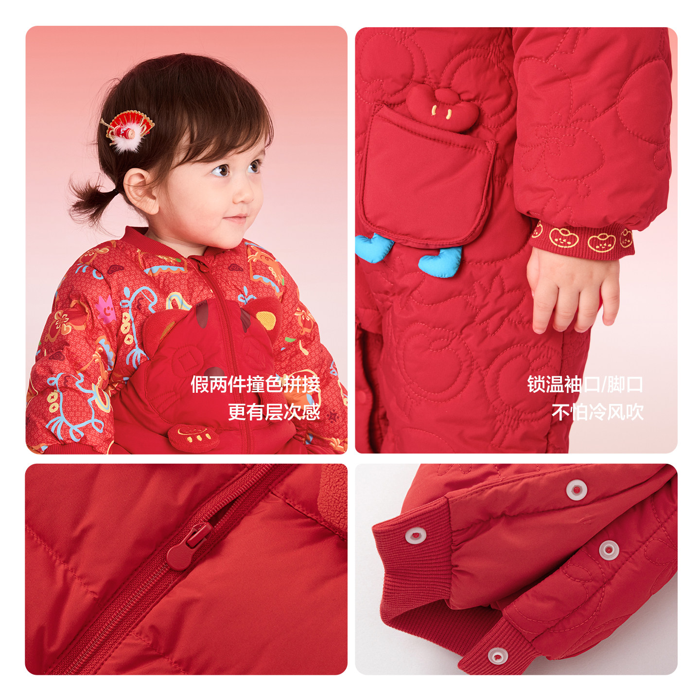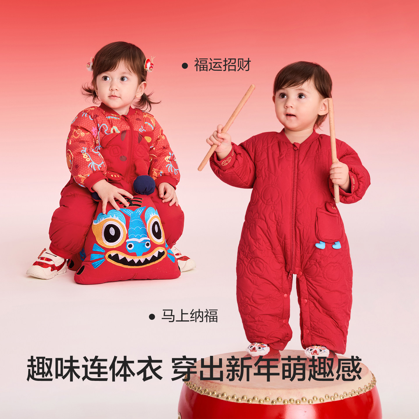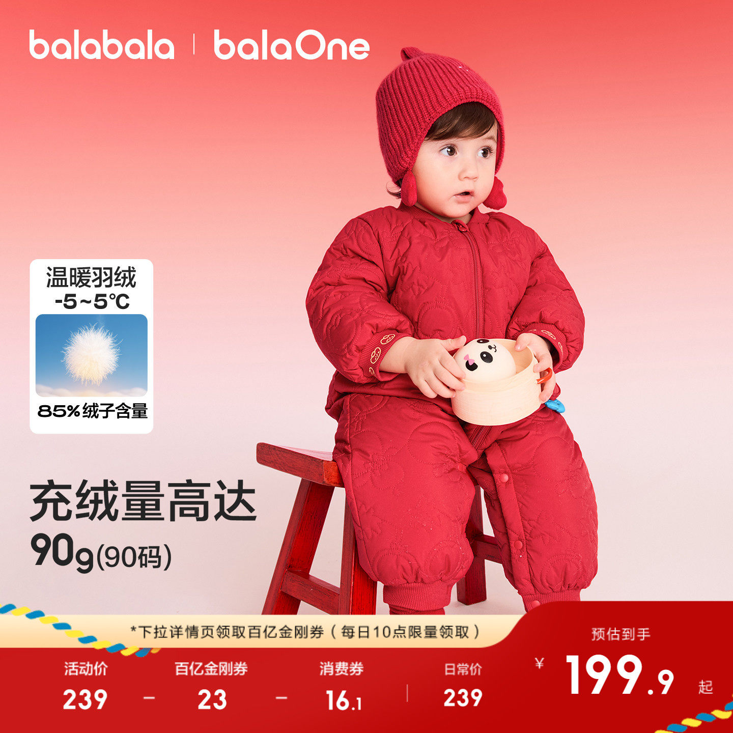 巴拉巴拉童装宝宝羽绒连体衣婴儿衣服2026新款儿童新年拜年服红色