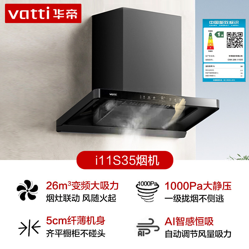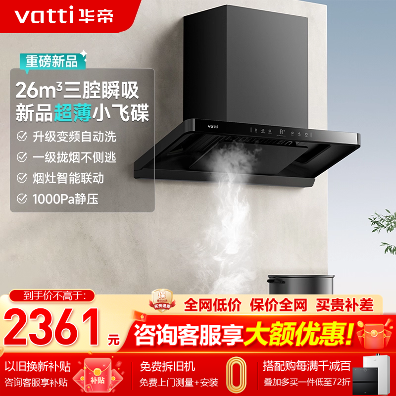华帝超薄小飞碟S35抽油烟机26m³变频大吸力自清洗顶吸式厨房家用