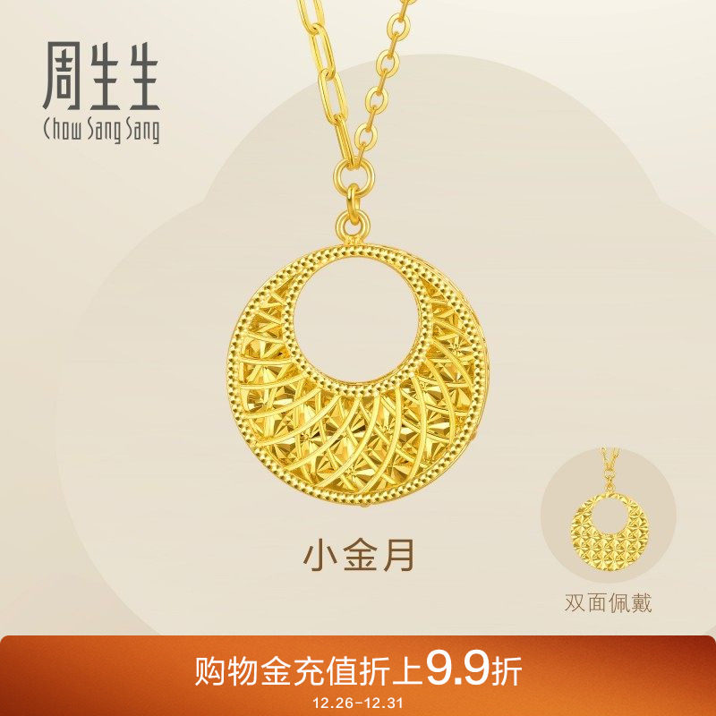 周生生永立体镂空设计圆形爆闪小金月黄金项链足金套链93439N