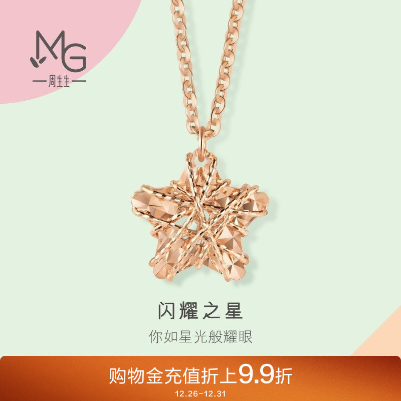 周生生18K玫瑰金项链五角星星形K金项链吊坠91600N