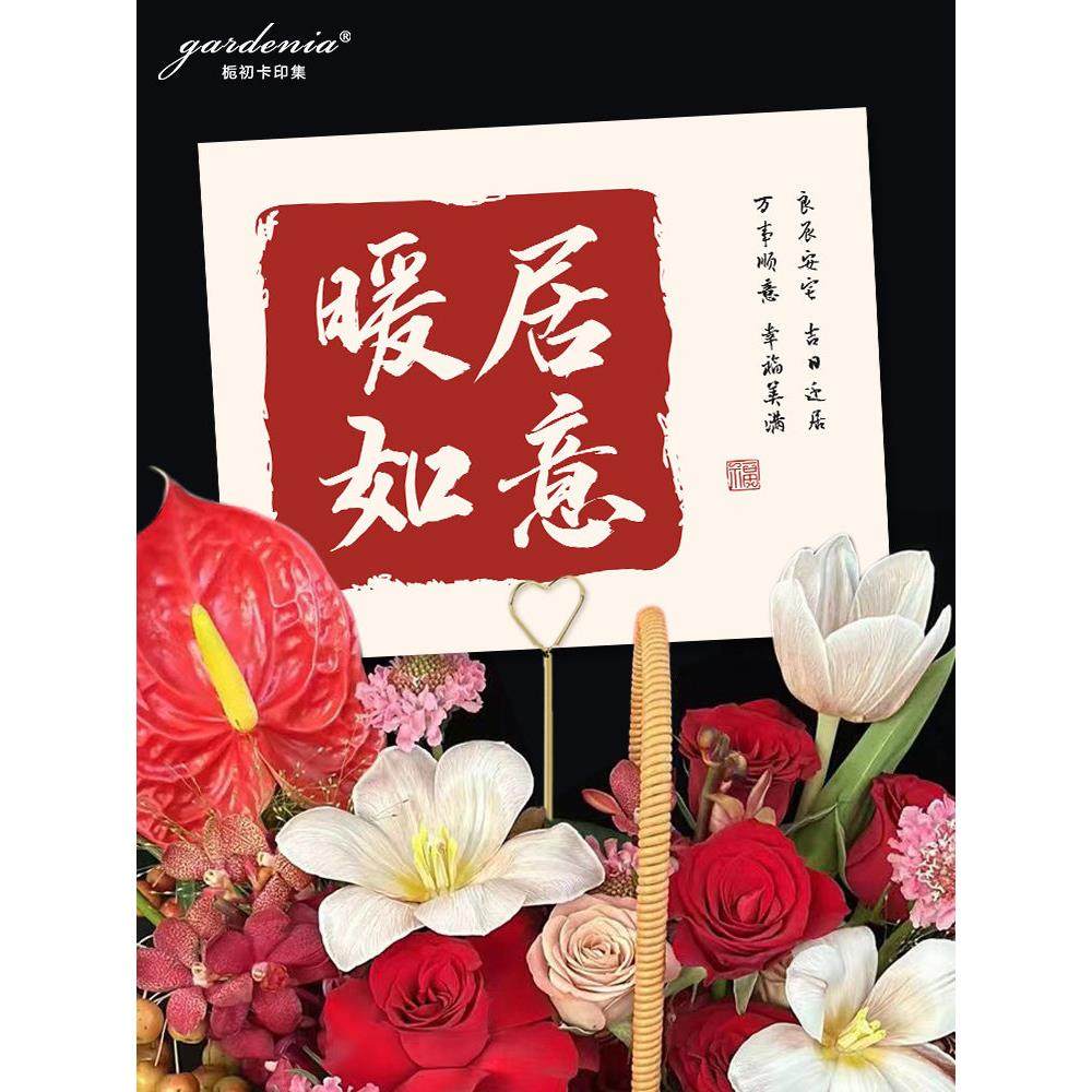 喜迁新居贺卡搬新家喜庆暖居装饰卡片乔迁花篮水果礼盒包装祝福卡