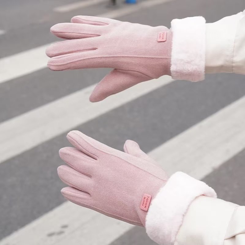 冬季电动车手套加厚加绒保暖防寒触屏男女士防风麂皮绒德绒自发热