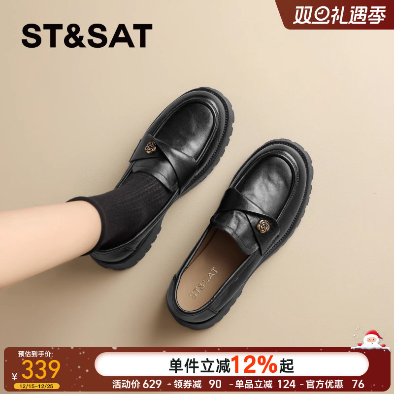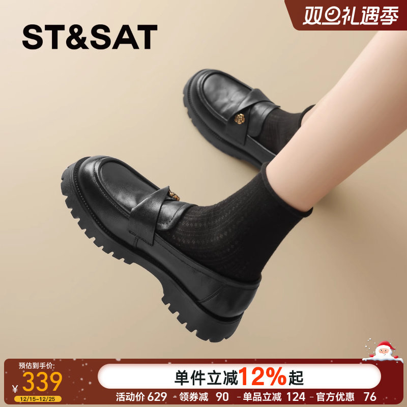 星期六爆款山茶花乐福鞋女2025新款英伦厚底小皮鞋一脚蹬单鞋