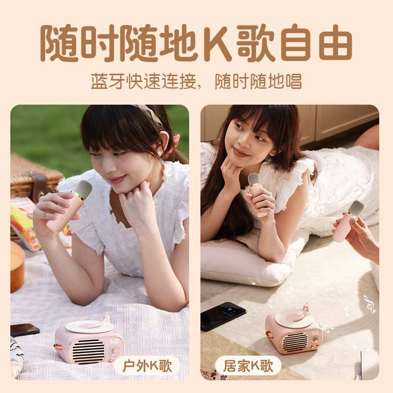 复古音响黑胶唱片蓝牙音箱家用无线K歌话筒麦克风圣诞节生日礼物