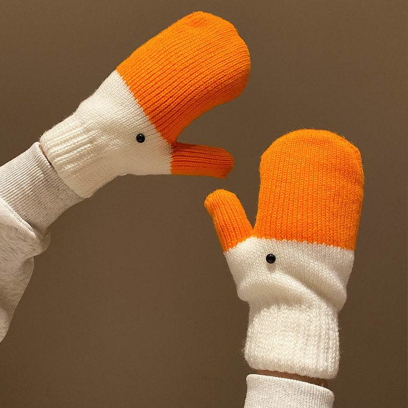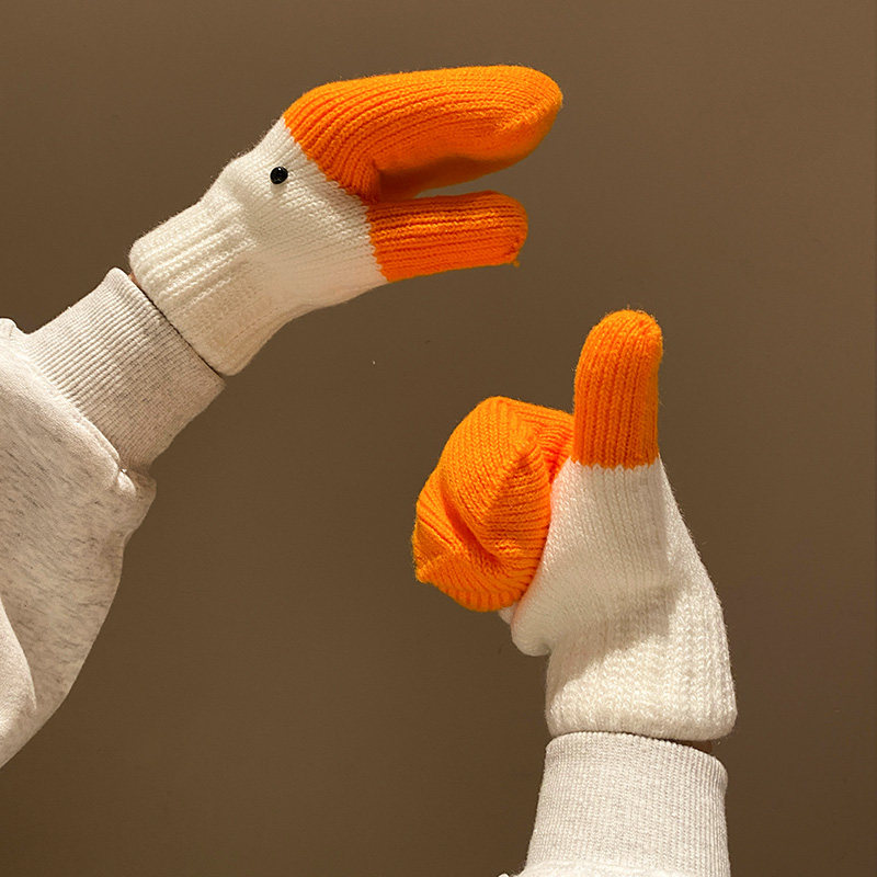 手工搞怪针织大鹅毛线手套女2024年秋冬季可爱连指加绒加厚防寒潮