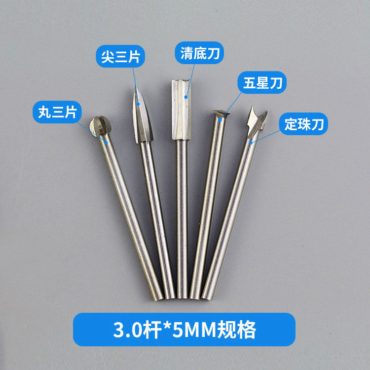 3.0杆白钢木工雕刻工具雕刻刀铣刀头钻头木雕菩提子核雕工具套装