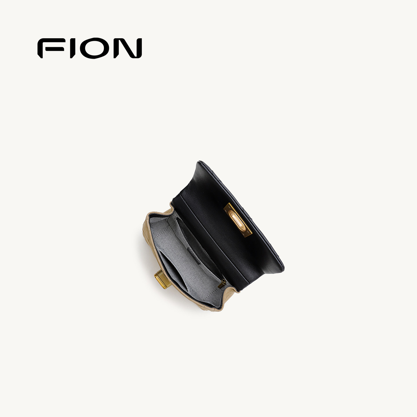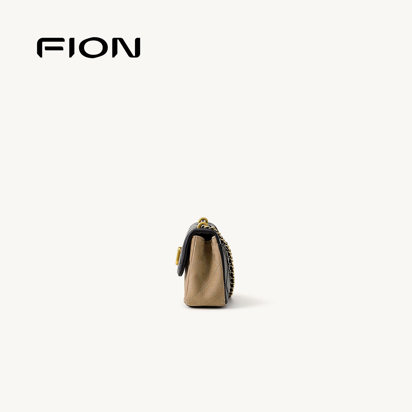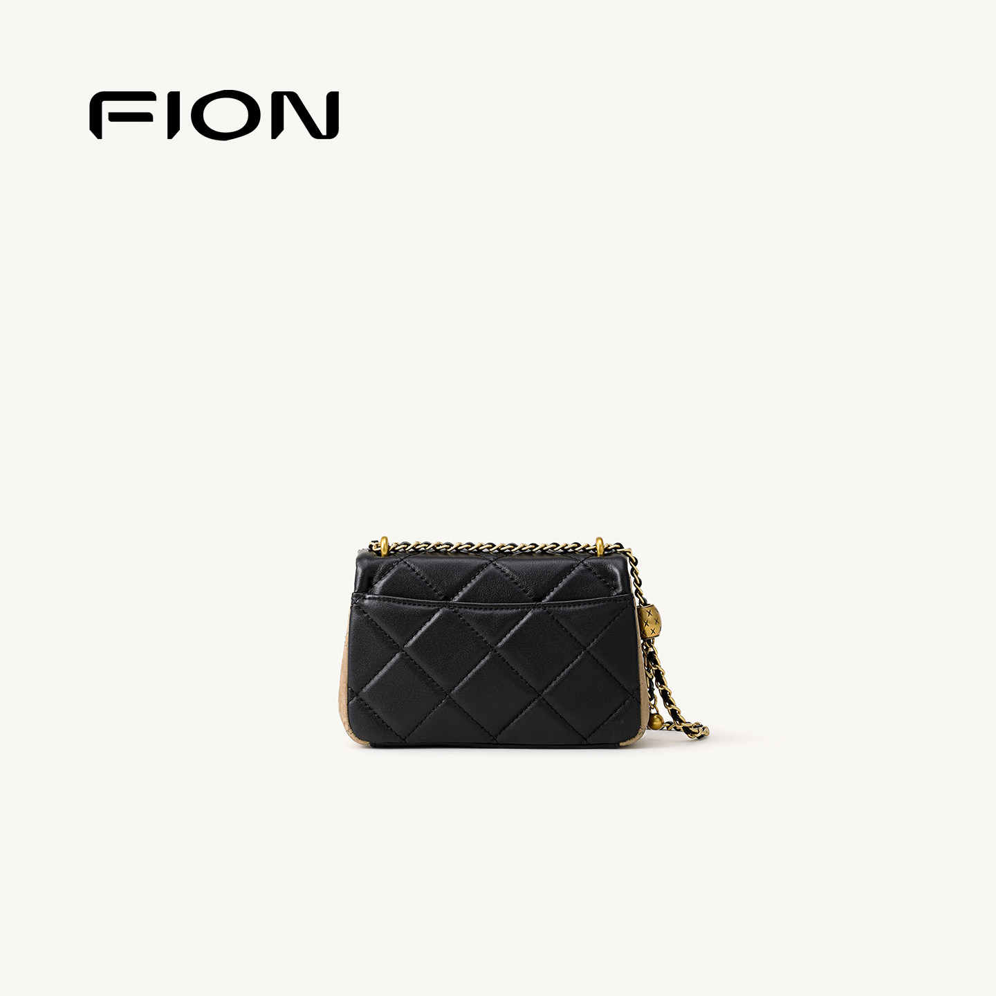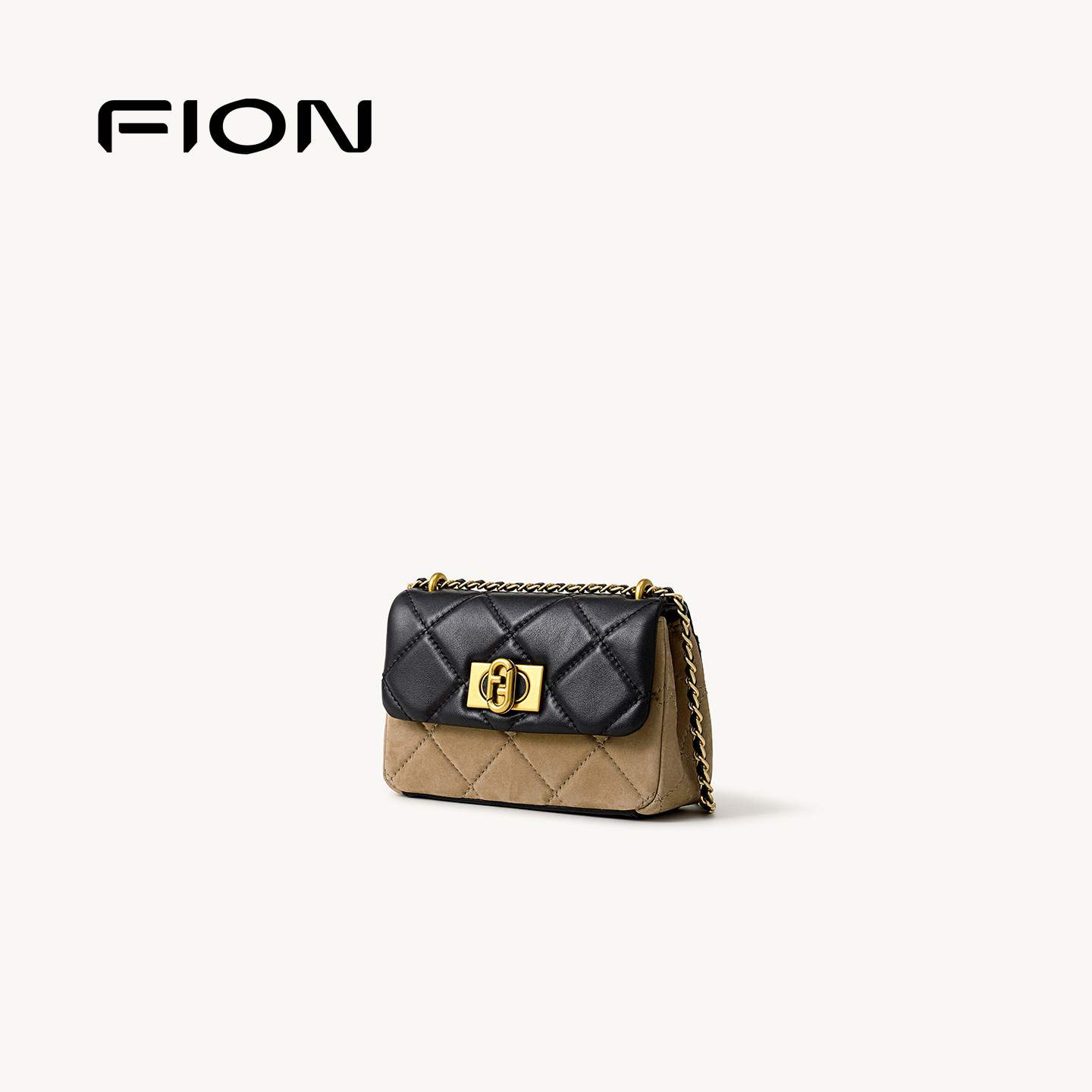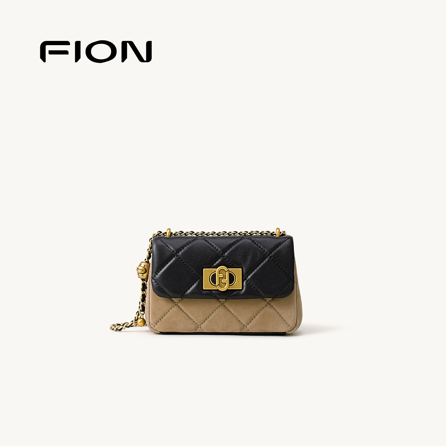 Fion/菲安妮真皮小方包时尚菱格高级轻奢链条包单肩斜挎包包女