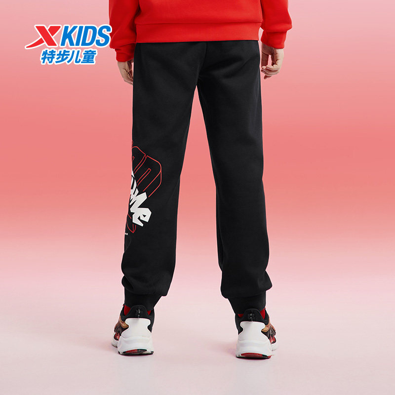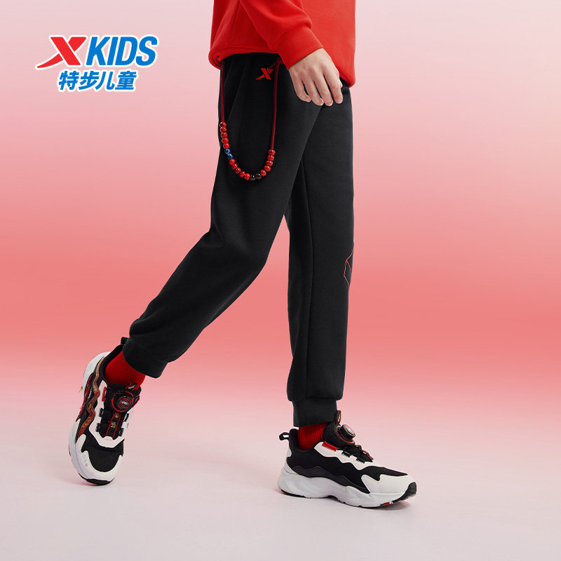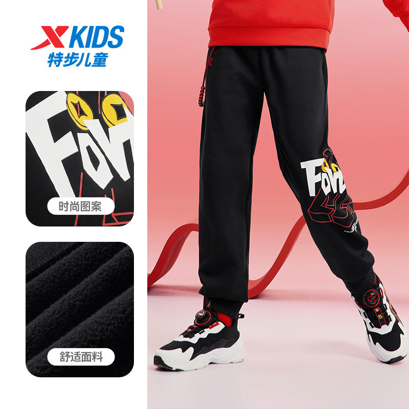 特步童装儿童加绒长裤男童春秋季款运动裤中大童时尚国潮保暖裤子