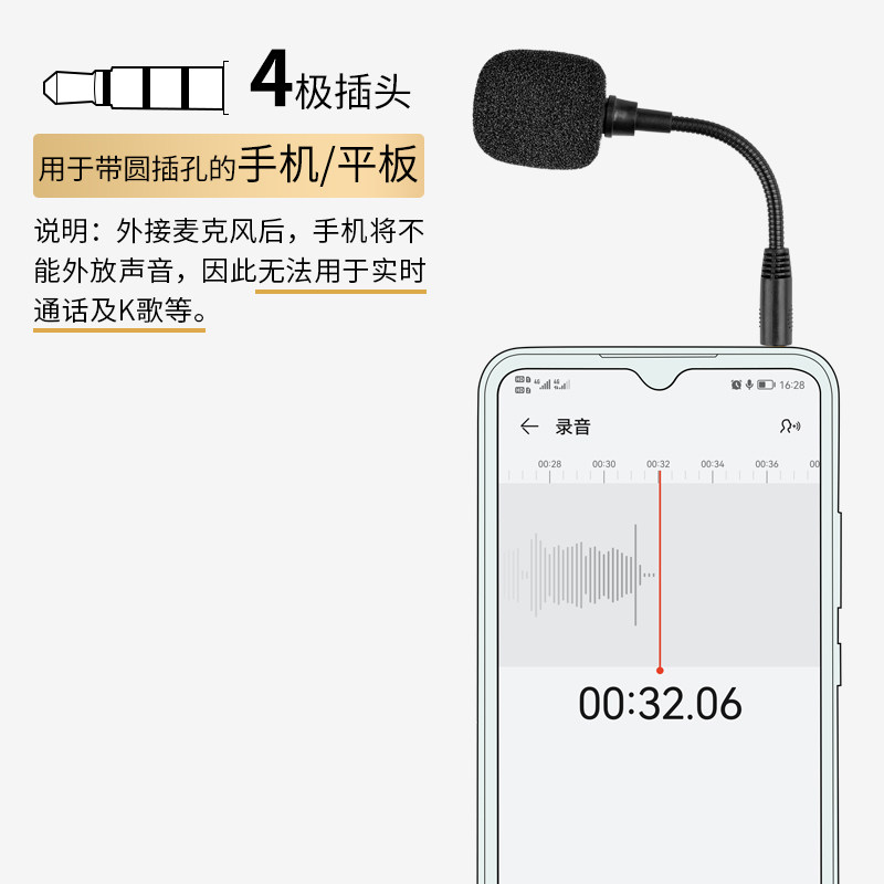 直插式麦克风扩音器外接话筒手机电脑平板声卡3.5mm录音语音麦
