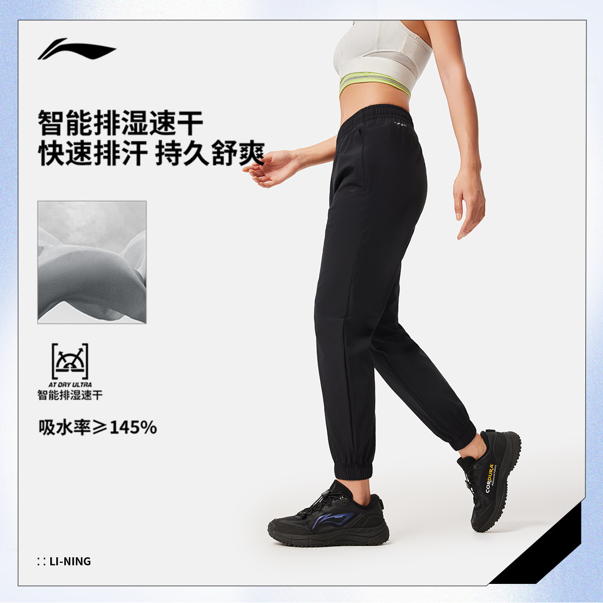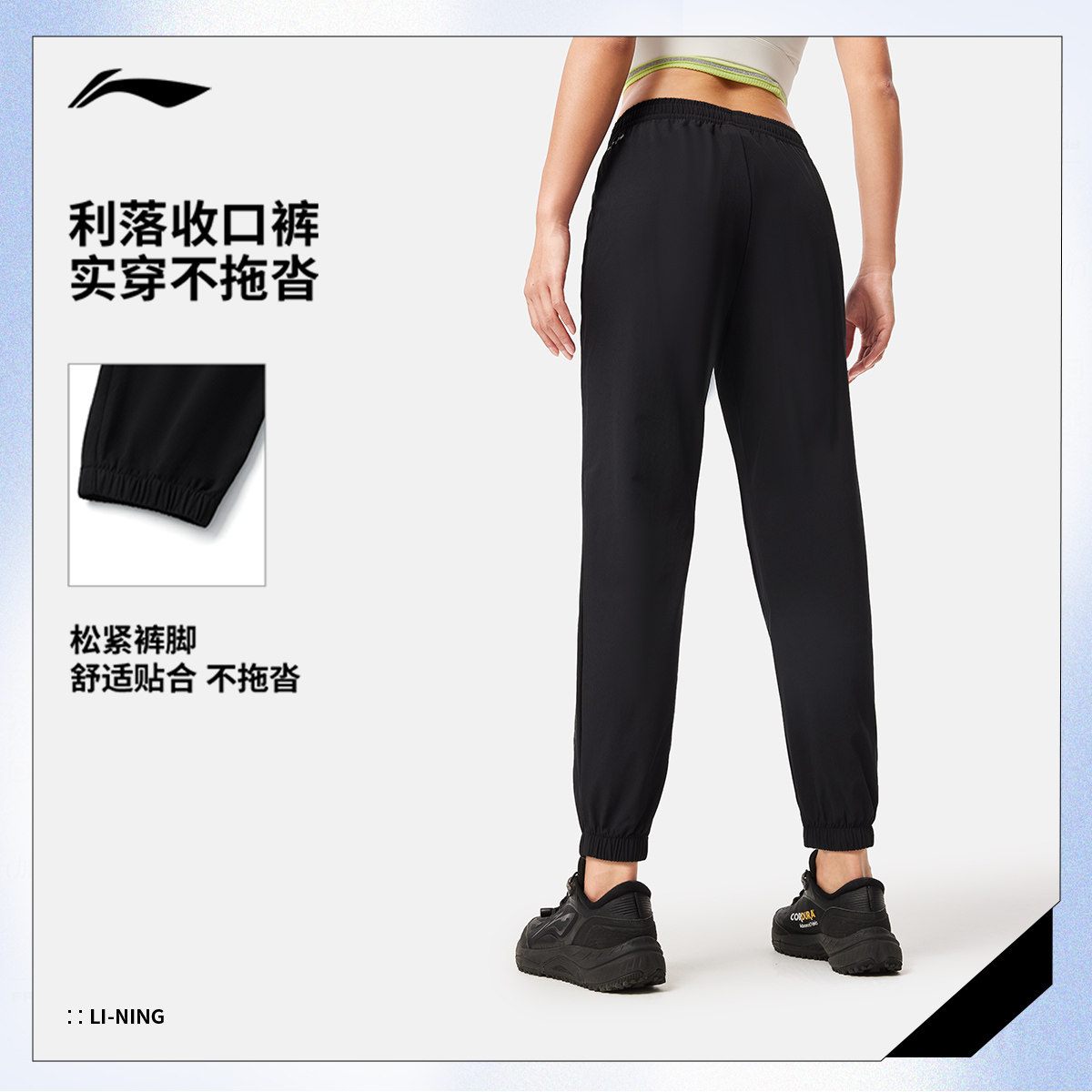 李宁运动裤女士夏季新款健身跑步速干裤束脚直筒裤梭织运动长裤
