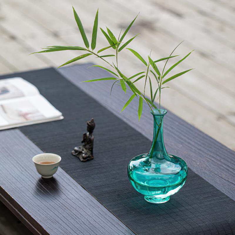 翡绿色小花瓶新中式玻璃磨砂透明琉璃花器摆件客厅桌面插花器皿