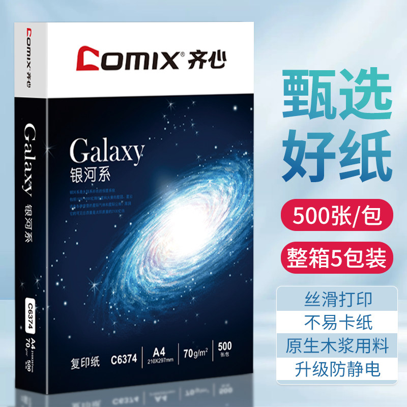 齐心a4打印纸复印纸70g单包a4纸500张一包银河系打印纸a4批发整箱办公用品A4打印白纸一箱草稿纸学生用包邮