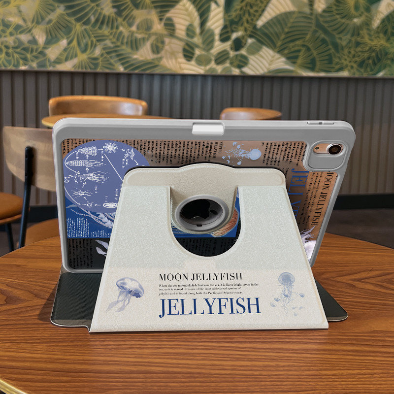 【720旋转x新品露标款】适用于ipad保护壳蓝色水母2022新款pro11可旋转air5平板套10.2亚克力2021全包防弯摔