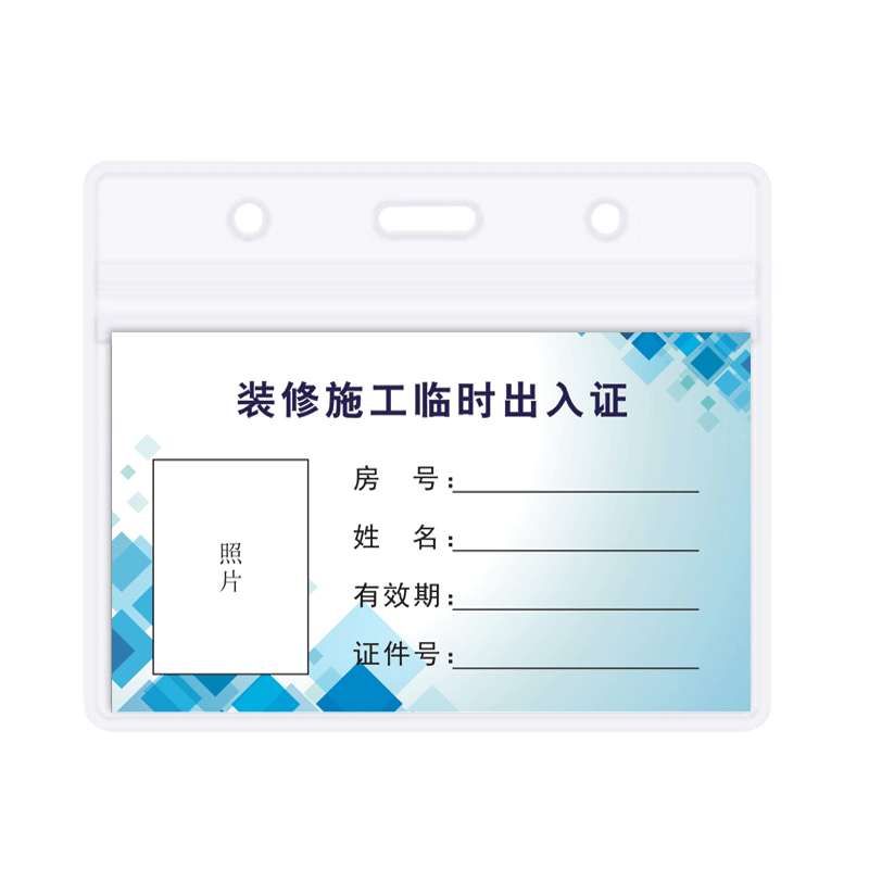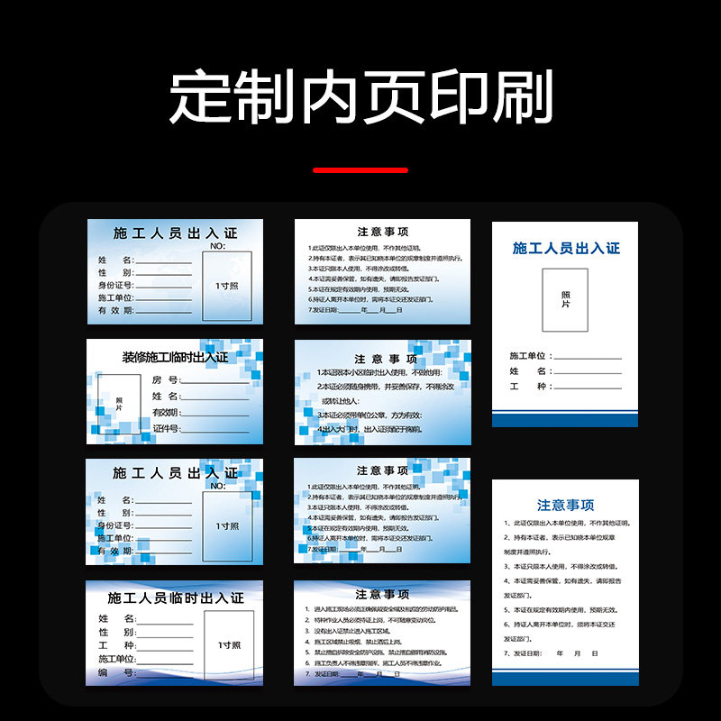 施工人员出入证施工证装修人员装修工人出入证通行牌临时出入证定制卡套物业小区进出车辆外来人员出入证套装