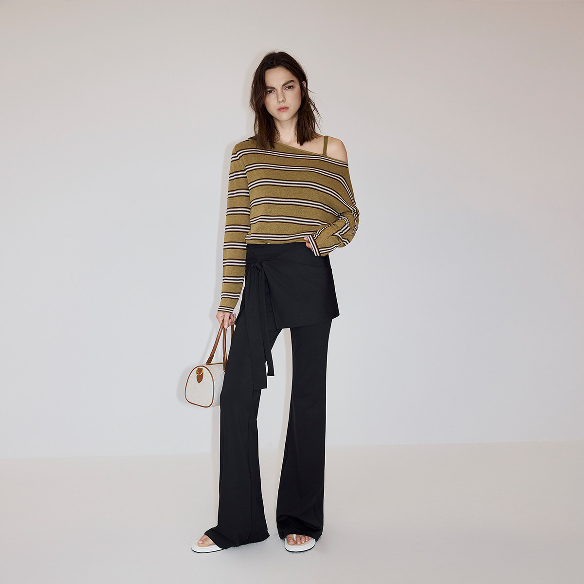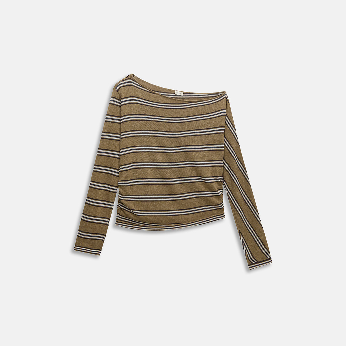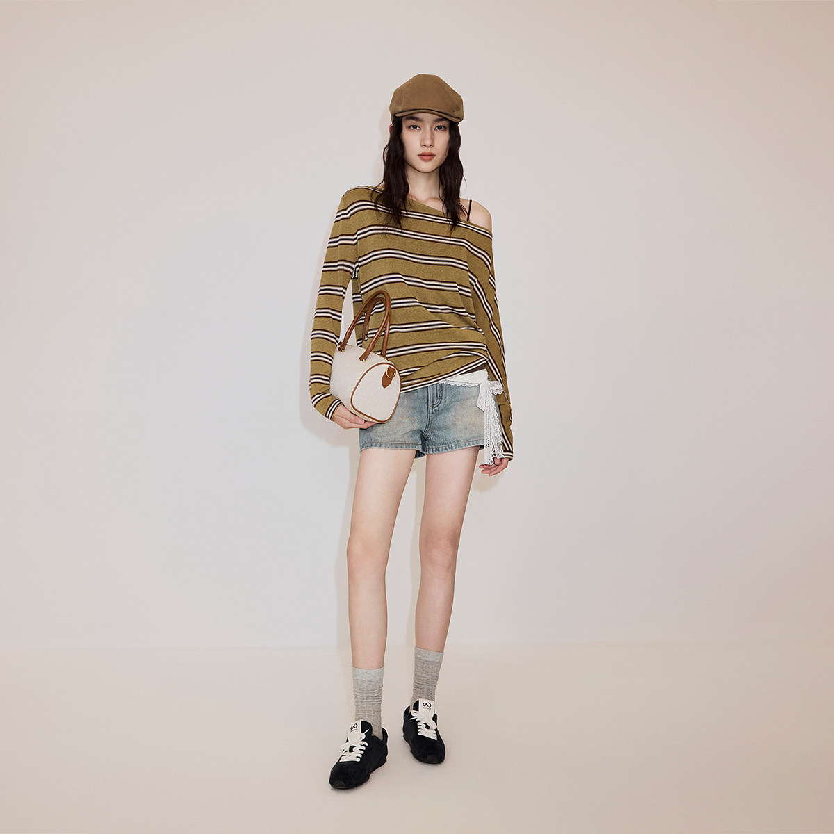 【新品】OCHIRLY欧时力 针织衫2026春莱赛尔亚麻斜肩条纹防晒上衣