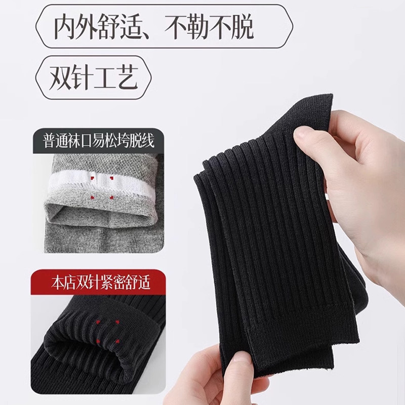 黑色纯棉袜子男款秋冬中筒袜防臭冬天吸汗抗起球商务休闲运动长袜